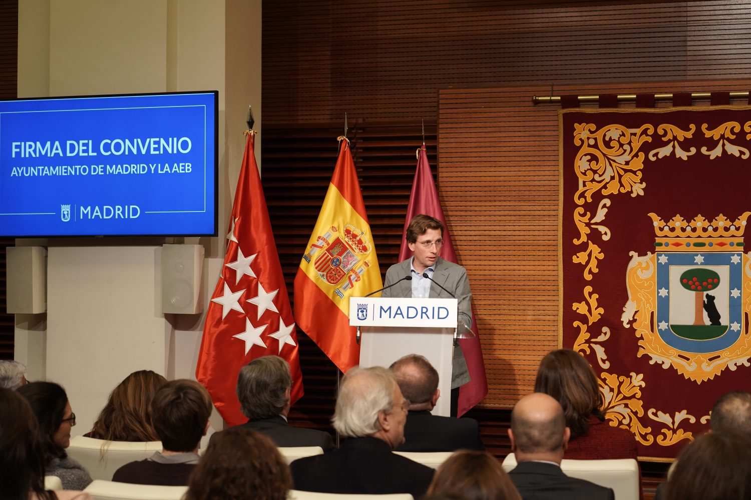 El alcalde de Madrid, José Luis Martínez-Almeida, ha firmado hoy con la presidenta de la AEB, Alejandra Kindelán, este acuerdo que, además, servirá para la formación de la ciudadanía en el uso y acceso a los servicios digitales municipales. Ambos han estado acompañados por el delegado de Economía, Innovación y Empleo, Miguel Ángel Redondo, y el director general de Conducta Financiera y Billetes del Banco de España, Alberto Ríos, así como por representantes de diversas asociaciones de consumidores.