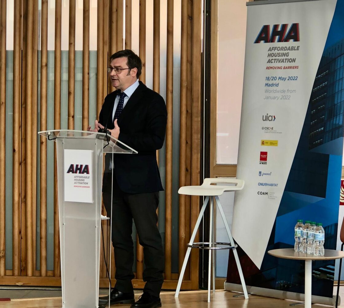 El concejal delegado de Vivienda, Álvaro González, ha participado esta mañana en la sede del Colegio Oficial de Arquitectos de Madrid en la presentación del Foro Internacional UIA 2022 sobre vivienda asequible que se celebrará en mayo del próximo año en la capital y en el que el Ayuntamiento es uno de los organizadores del evento.