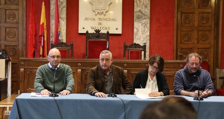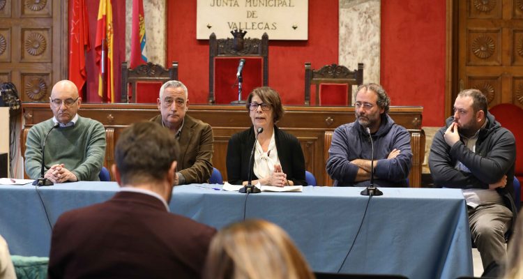 La delegada del Área de Medio Ambiente y Movilidad, Inés Sabanés; el concejal de los distritos de Puente de Vallecas y Villa de Vallecas, Paco Pérez; el concejal de los distritos de Villaverde y Fuencarral-El Pardo, Guillermo Zapata; el director del Parque Tecnológico de Valdemingómez, Miguel Ángel Baquedano, y el presidente de la FRAVM (Federación Regional de Asociaciones Vecinales de Madrid), Quique Villalobos, han comparecido este miércoles, 19 de diciembre, en rueda de prensa en la junta de distrito de Puente de Vallecas para explicar los motivos del rechazo del Ayuntamiento de Madrid a la petición de la Comunidad de Madrid de albergar los residuos procedentes de los municipios de la Mancomunidad del Este.
