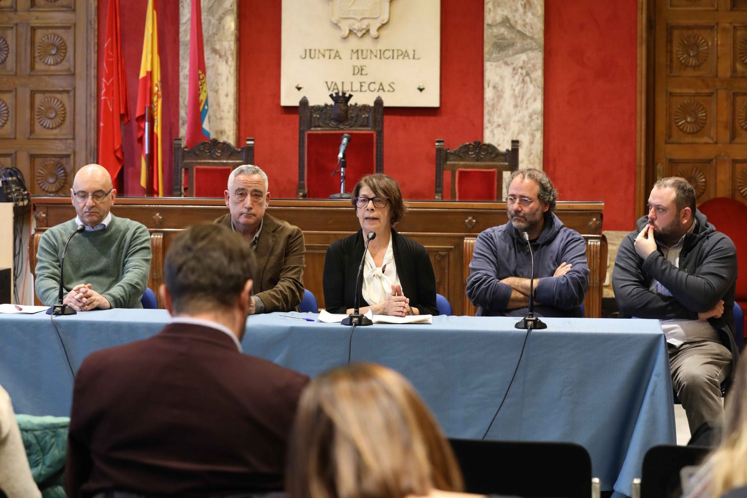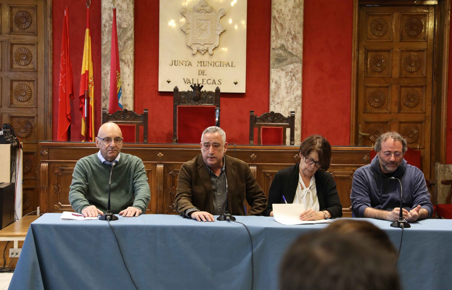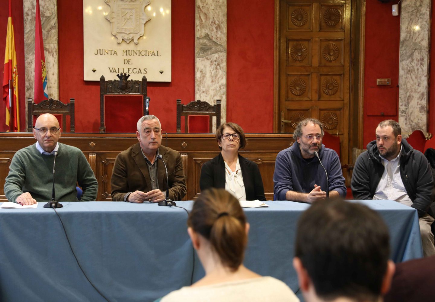 La delegada del Área de Medio Ambiente y Movilidad, Inés Sabanés; el concejal de los distritos de Puente de Vallecas y Villa de Vallecas, Paco Pérez; el concejal de los distritos de Villaverde y Fuencarral-El Pardo, Guillermo Zapata; el director del Parque Tecnológico de Valdemingómez, Miguel Ángel Baquedano, y el presidente de la FRAVM (Federación Regional de Asociaciones Vecinales de Madrid), Quique Villalobos, han comparecido este miércoles, 19 de diciembre, en rueda de prensa en la junta de distrito de Puente de Vallecas para explicar los motivos del rechazo del Ayuntamiento de Madrid a la petición de la Comunidad de Madrid de albergar los residuos procedentes de los municipios de la Mancomunidad del Este.