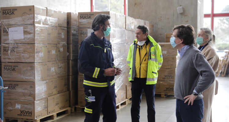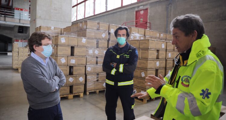 El alcalde de Madrid, José Luis Martínez-Almeida ha supervisado esta mañana un nuevo envío de material sanitario adquirido por el Ayuntamiento para hacer frente a la pandemia del coronavirus. La delegada del Área de Portavoz, Seguridad y Emergencias, Inmaculada Sanz, recepcionó anoche 1,25 millones de pares de guantes y 638.000 mascarillas modelo FFP2 en el almacén municipal provisional habilitado en la Casa de Campo, donde se guarda el material adquirido y donado durante el estado de alarma.