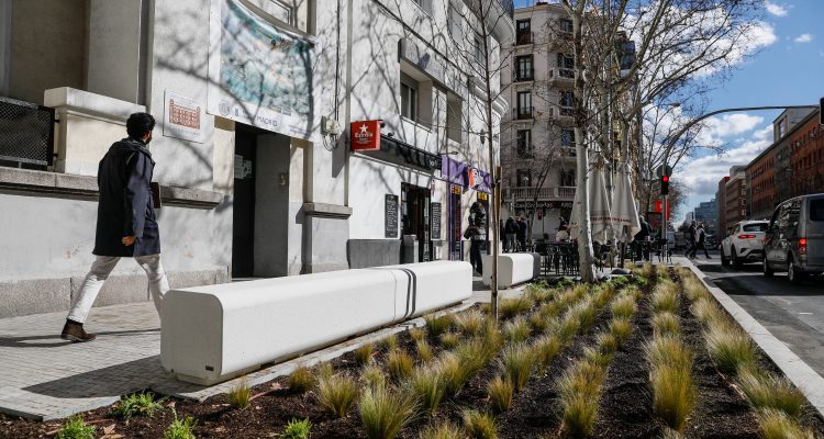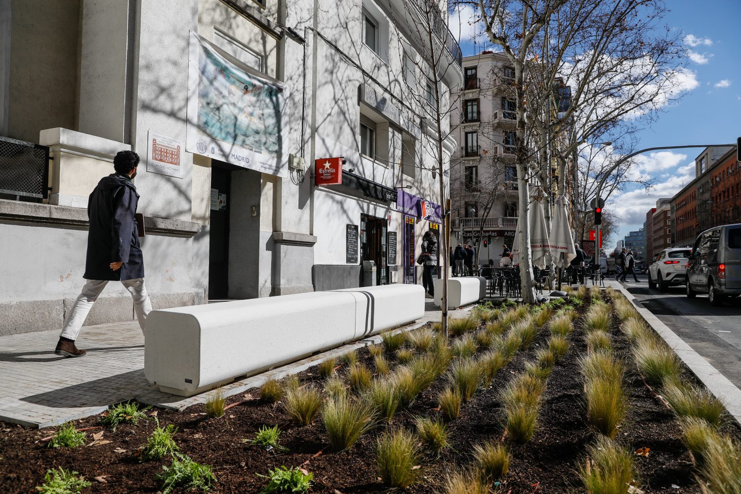 La intervención ha incluido la ampliación de las aceras de las calles Cea Bermúdez y Vallehermoso y la instalación de grandes parterres acompañados de bancos perimetrales que actúan como barrera frente al tráfico. Además, se ha peatonalizado la galería de Vallehermoso para crear una conexión directa y segura con los jardines del Teniente de Alcalde Pérez Pillado. Para realizar dicha conexión, se ha creado un paso regulado con semáforo frente al colegio.