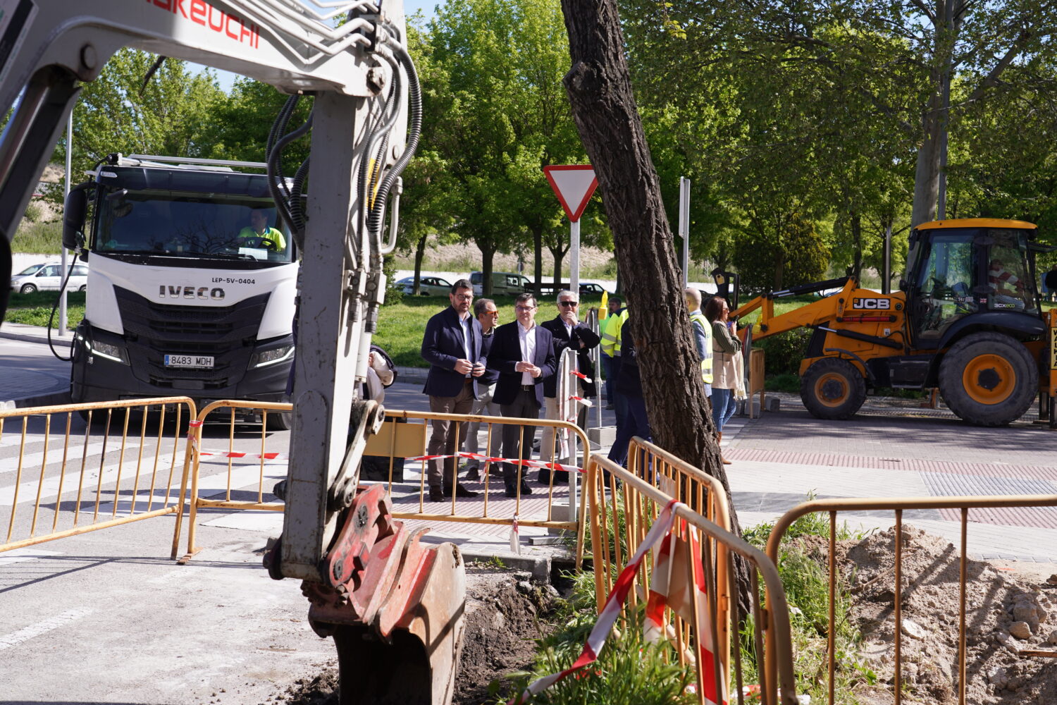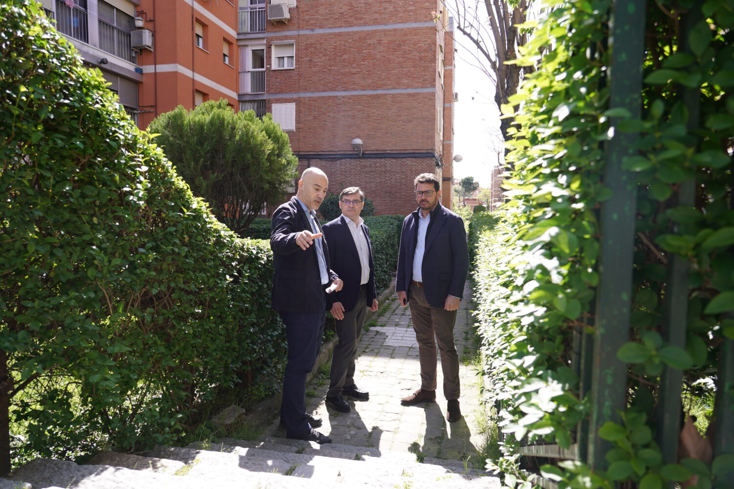 El delegado de Políticas de Vivienda y presidente de la Empresa Municipal de la Vivienda y Suelo (EMVS Madrid), Álvaro González, acompañado del concejal de Villa de Vallecas, Carlos González, ha visitado esta mañana las obras de regeneración urbana que, a través del Plan Regenera Madrid, se están llevando a cabo en el distrito.