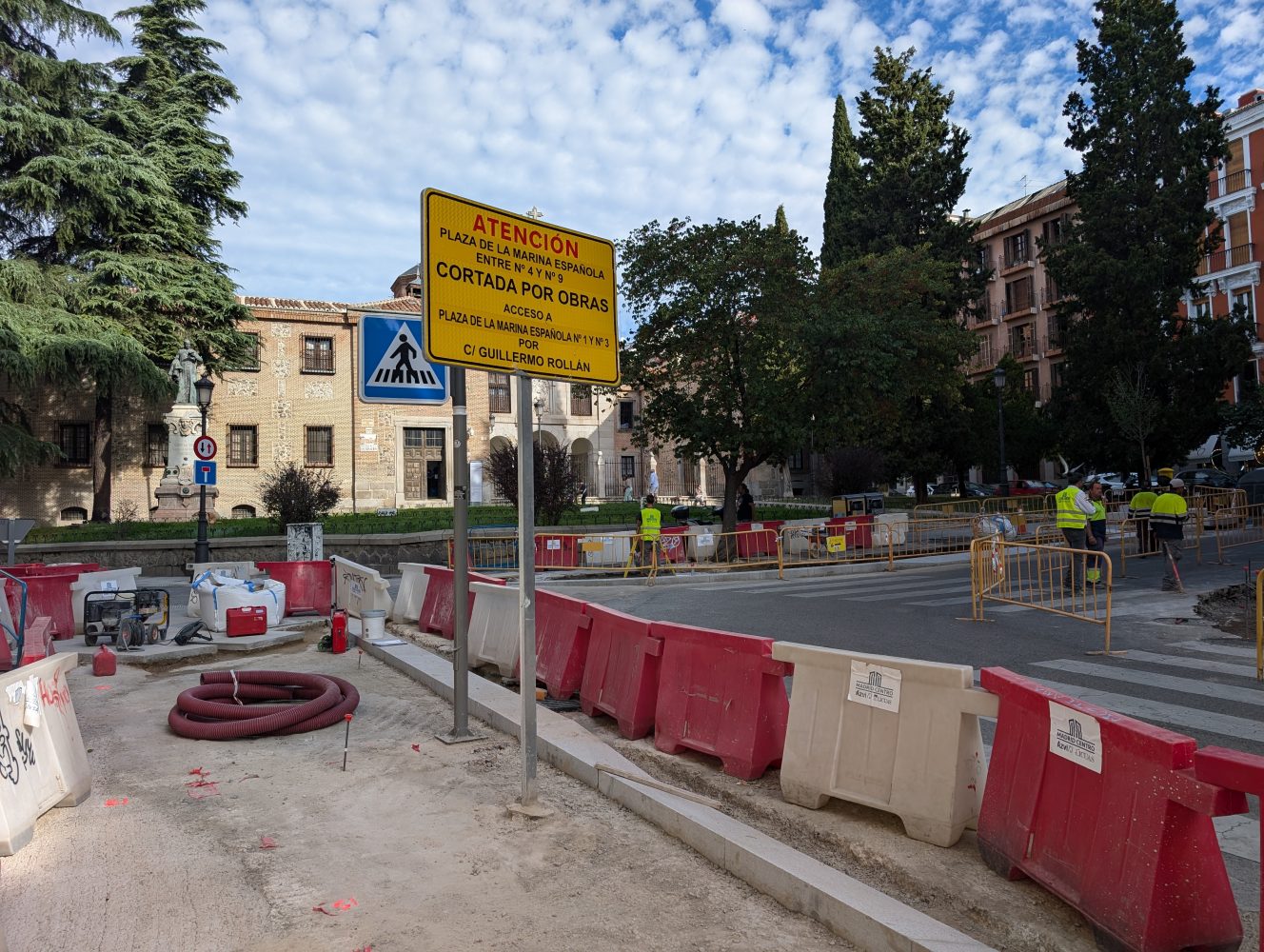 Por otro lado, siguiendo los mismos criterios que en la calle de San Quintín, se ha transformado la plaza de la Marina Española hasta la calle de la Encarnación, en una calle de plataforma única con pavimento de adoquín de granito y nuevo mobiliario urbano. /