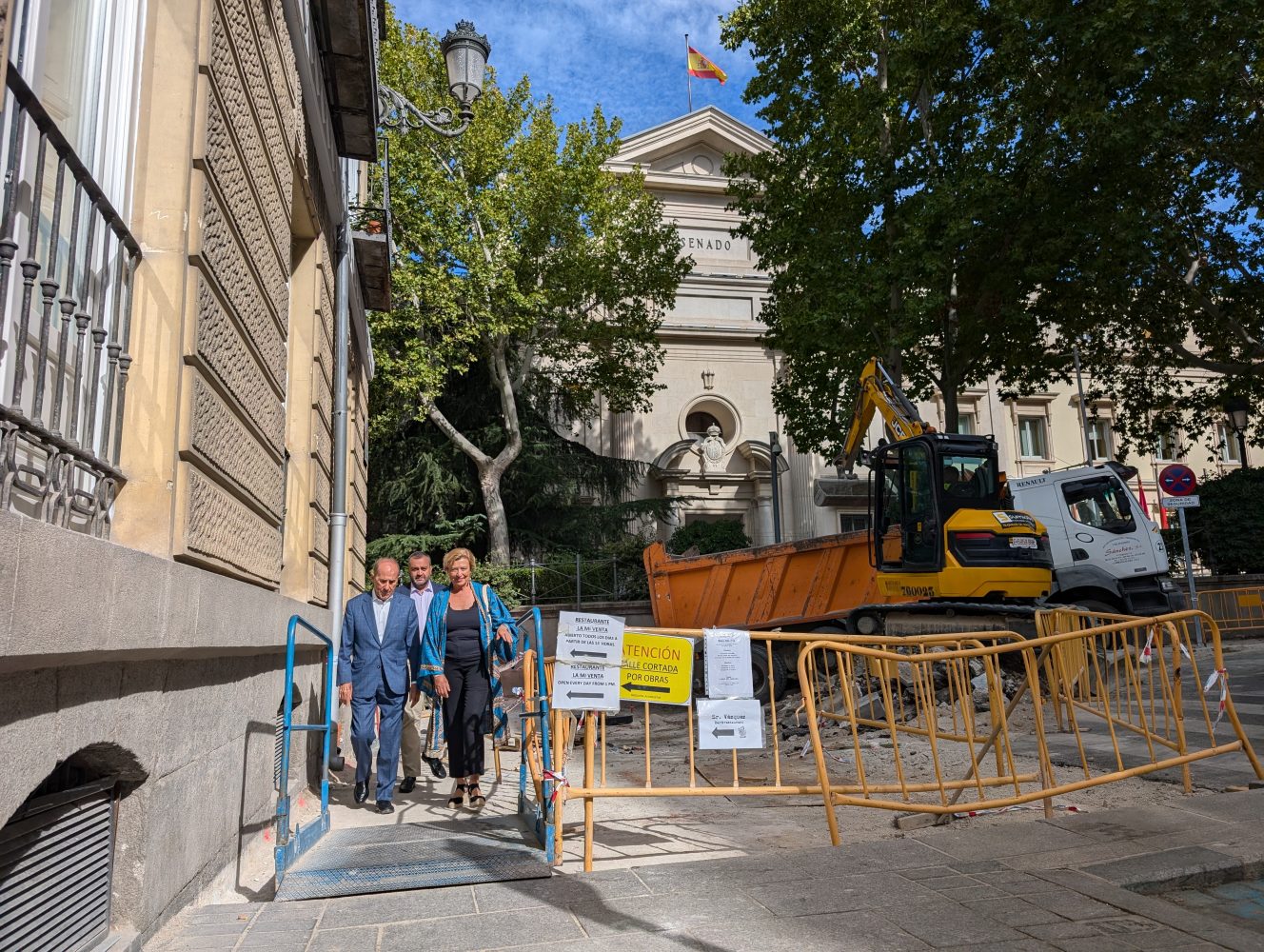 La delegada de Obras y Equipamientos, Paloma García Romero, acompañada del concejal de Centro, Carlos Segura, ha visitado esta mañana la calle de San Quintín y la plaza de la Marina Española, cuyos trabajos de remodelación concluirán este otoño. El objetivo de la intervención es integrar estas dos vías perpendiculares a la calle de Bailén con su entorno, ya que la configuración de estas no se correspondía con la peatonalización de la calle de Bailén llevada a cabo como consecuencia de la remodelación de la plaza de España.