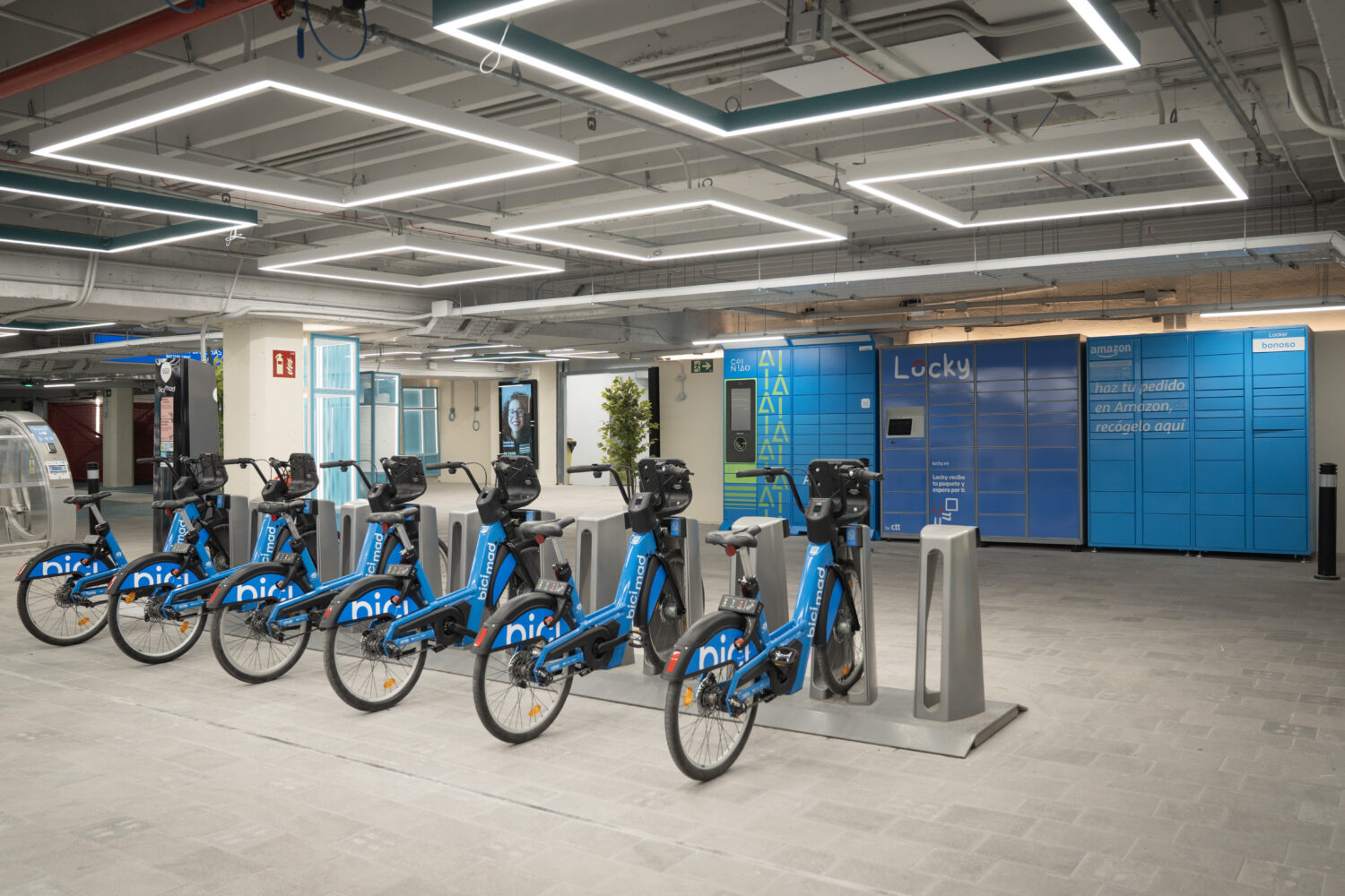 - Hub logístico de Colón: a lo largo de 2026, se licitará el proyecto para transformar la actual base de grúas de EMT Madrid en Colón. Se prevé dedicar 4.000 m2 al futuro hub logístico, que contará con puntos de recarga, plazas de carga y descarga, actividades cross-docking (procesos de envío de productos sin almacenamiento), reparto de última milla y taquillas. El hub de movilidad sostenible sumará 1.300 m2 y estará equipado con carga eléctrica de alta potencia, carsharing, bicimad, bicipark e intercambio de baterías (battery swap). Busca reducir el número de vehículos necesarios para la actividad logística en el centro de Madrid y optimizar las rutas, trasvasar la actividad logística a horas valle, preferentemente por la noche, potenciar la entrega de paquetería fuera de los domicilios y promover modos de reparto sostenible (bicicletas, vehículos eléctricos, etc.). Esta reforma se enmarca en los planes de transformación de parkings tradicionales en hubs de movilidad, que va a permitir que la ciudad vaya a cerrar 2025 con ocho instalaciones de estas características ya operativas en Canalejas, Recoletos, plaza de España, Santa Ana, Luna-Tudescos, paseo de Artilleros, plaza del Carmen y Cortes.