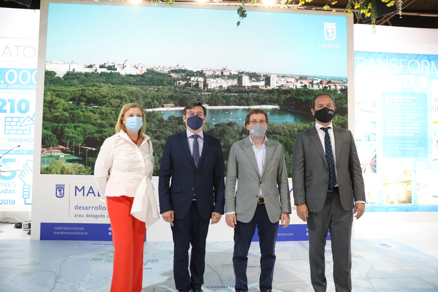 El alcalde de Madrid, José Luis Martínez-Almeida, ha visitado este viernes el estand del Ayuntamiento en la feria inmobiliaria SIMA, que se celebra en IFEMA hasta el domingo. Lo ha hecho acompañado por los delegados de Desarrollo Urbano, Mariano Fuentes, y de Obras, Paloma García Romero, así como por el concejal del Área Delegada de Vivienda, Álvaro González, y el consejero delegado de la Empresa Municipal de Vivienda y Suelo (EMVS), Diego Lozano.