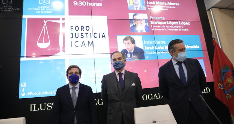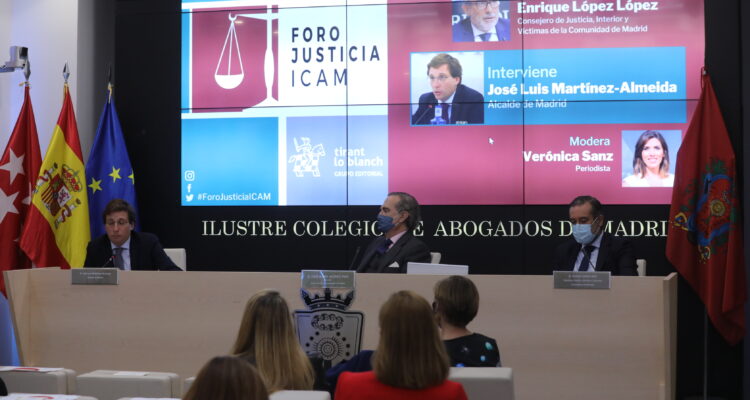 El alcalde de Madrid, José Luis Martínez-Almeida y el decano del Ilustre Colegio de Abogados de Madrid, José María Alonso, han firmado hoy, en el marco del Foro de Justicia organizado por el ICAM, un protocolo de actuación de cuatro años de duración que tiene como propósito extender y consolidar la cooperación entre ambas instituciones en favor del interés general de la ciudadanía.