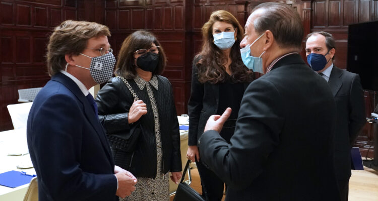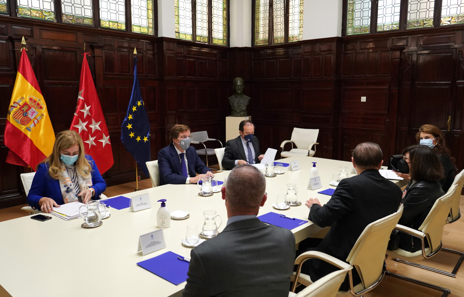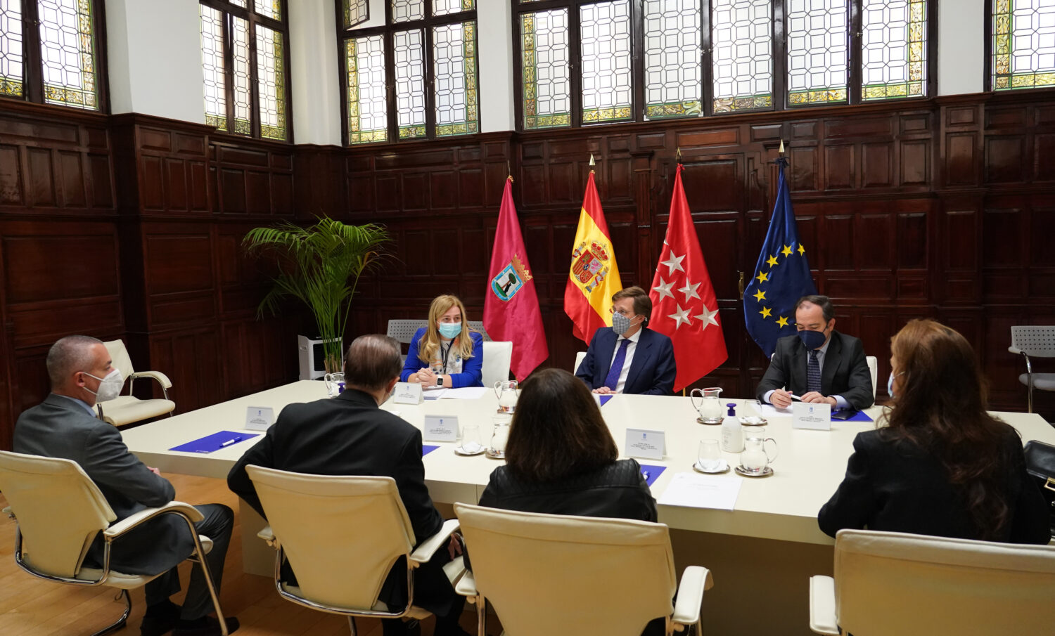 El alcalde de Madrid, José Luis Martínez-Almeida, acompañado de la portavoz municipal y delegada de Seguridad y Emergencias, Inmaculada Sanz, y el delegado de Medio Ambiente y Movilidad, Borja Carabante, ha mantenido un encuentro esta mañana con el fiscal de sala de Seguridad Vial de la Fiscalía General del Estado, Bartolomé Vargas; la fiscal superior de la Comunidad de Madrid, Almudena Lastra; la fiscal jefe provincial de Madrid, Pilar Rodríguez y el fiscal delegado de Seguridad Vial de la Fiscalía Provincial de Madrid, Álvaro Valverde, con el objetivo de impulsar y promover compromisos mutuos en materia de movilidad urbana sostenible y seguridad vial en la capital y estudiar las incidencias de los VMP (vehículos de movilidad personal), entre otras cuestiones.