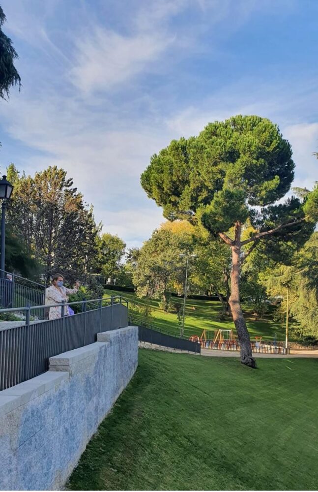 Con la instalación de varios tramos de rampa accesible en la calle de Aguilafuente, se ha bordeado el terraplén de acceso al parque. La intervención en la calle de Azuaga ha consistido en la colocación de una rampa de 60 metros en varios tramos y una escalera complementaria, mejorando así la conexión peatonal con los portales de viviendas y el acceso a las zonas verdes.