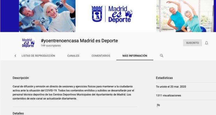 El canal de YouTube, que se puso en marcha para realizar ejercicio físico en casa, emitir clases en directo y divulgar recomendaciones para mantener a la ciudadanía activa ante el confinamiento provocado por la COVID-19, ha sumado en su primer mes 9.510 suscriptores y más de 256.000 visualizaciones.