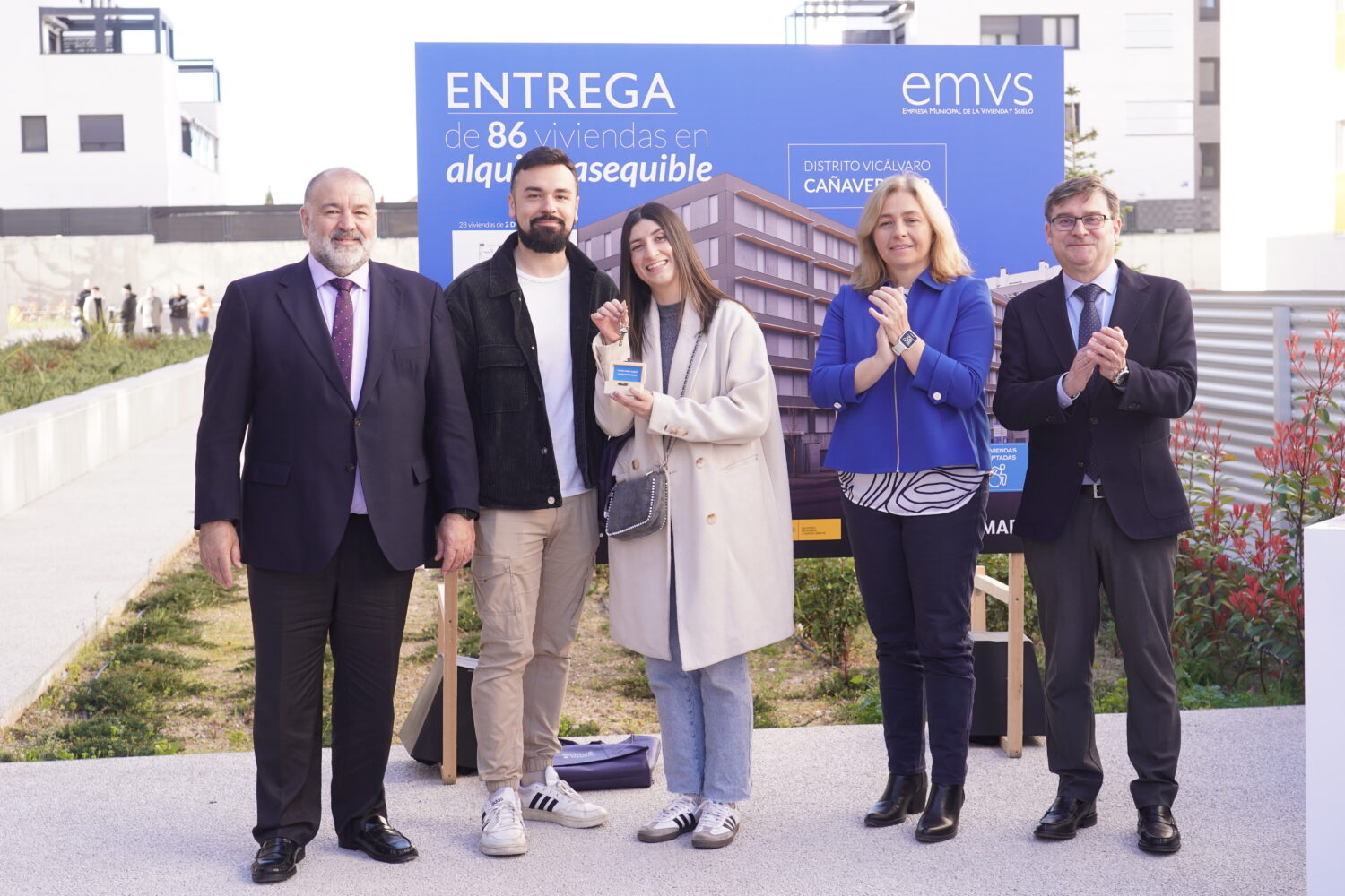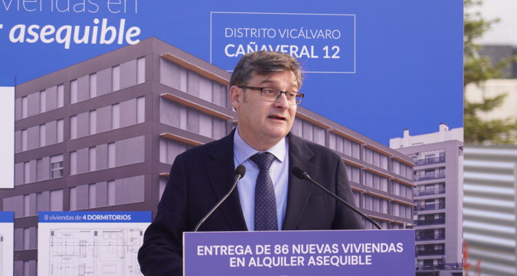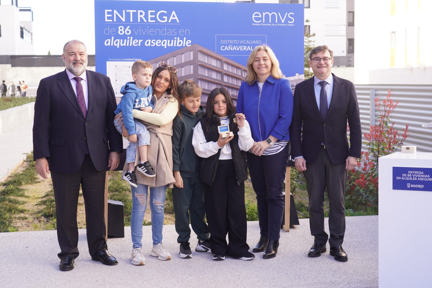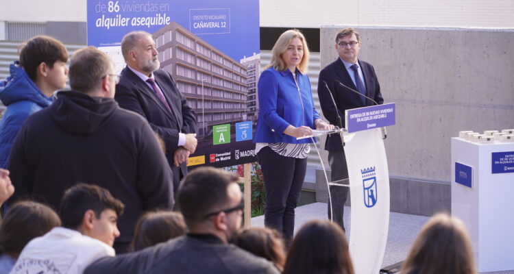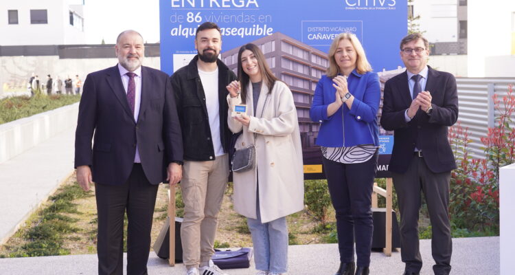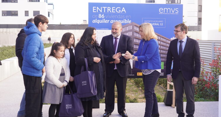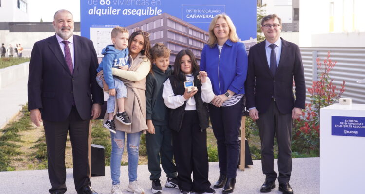 Más de 570 familias y jóvenes madrileños disfrutan ya de su hogar en una de las nuevas viviendas que el Ayuntamiento, a través de la Empresa Municipal de la Vivienda y Suelo de Madrid (EMVS Madrid), ha adjudicado en el barrio de El Cañaveral, en el distrito de Vicálvaro. Así lo ha destacado la vicealcaldesa de Madrid, Inma Sanz, tras entregar las llaves de sus nuevas casas a los adjudicatarios de la promoción Cañaveral 12, junto al delegado de Políticas de Vivienda y presidente de EMVS Madrid, Álvaro González. La nueva edificación cuenta con 86 viviendas públicas en régimen de alquiler asequible.