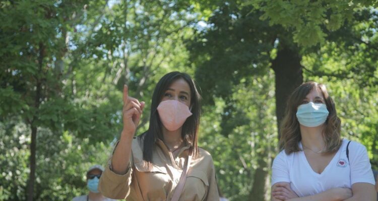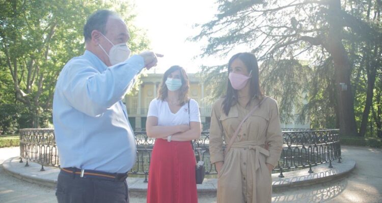 La vicealcaldesa de Madrid, Begoña Villacís, acompañada por la concejala del distrito de Barajas, Sofia Miranda, y el subdirector general de Parques y Viveros, Santiago Soria, ha asistido esta mañana a la reapertura del parque de El Capricho tras más de 75 días cerrado por la crisis de la COVID-19.