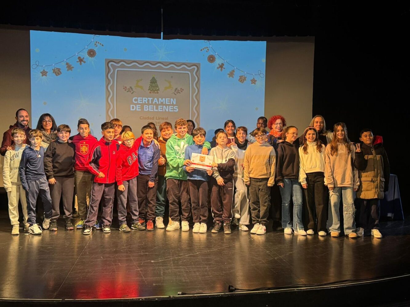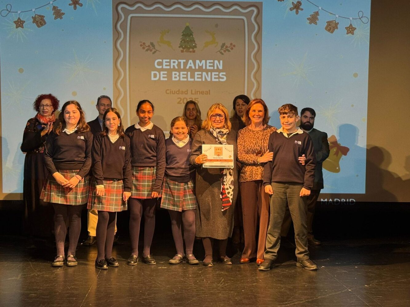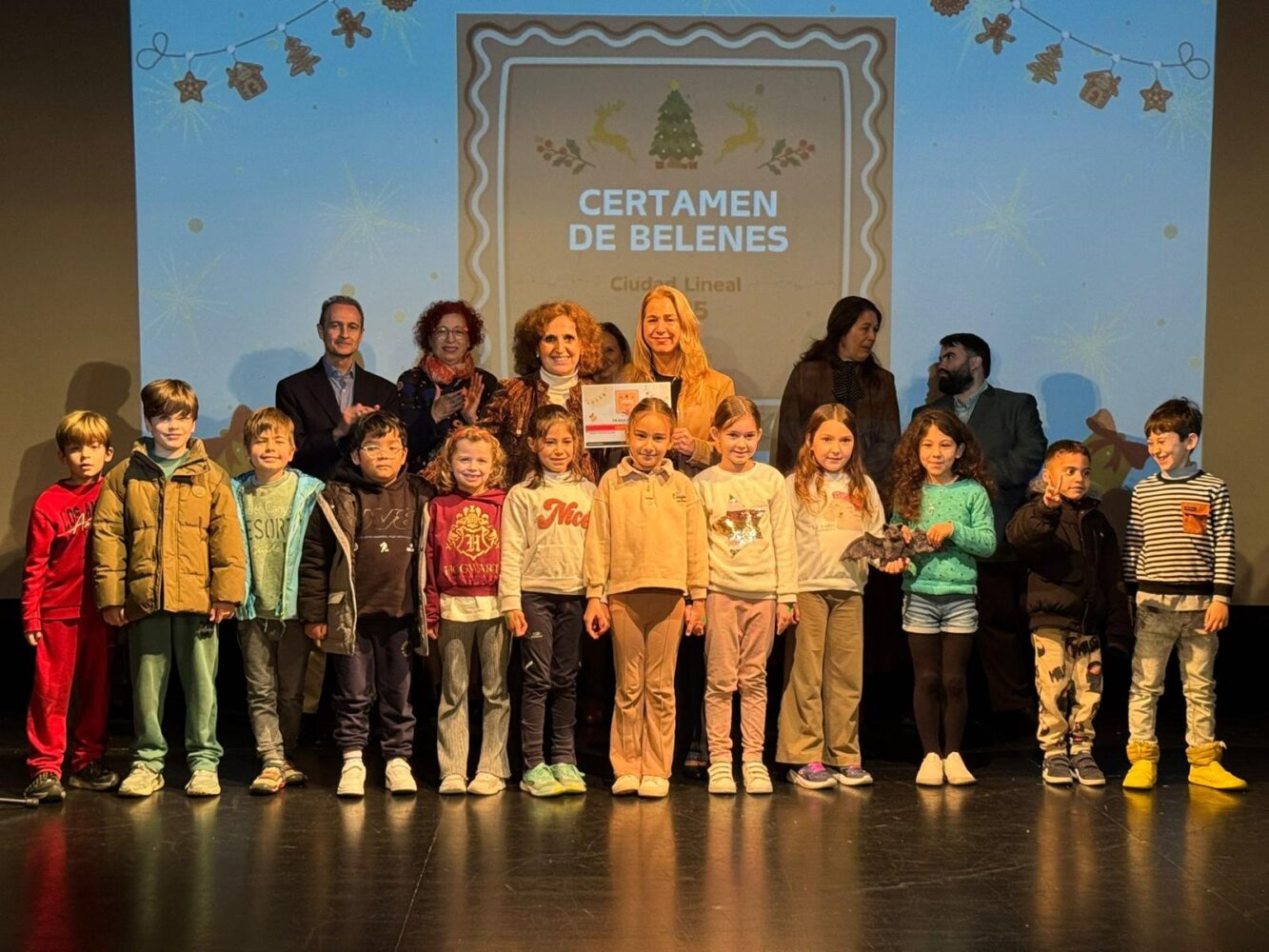 El auditorio del Centro Cultural San Juan Bautista ha albergado esta mañana la entrega de premios del VI Certamen Escolar de Belenes y Villancicos de Ciudad Lineal, organizado por la junta municipal. La concejala del distrito, Nadia Álvarez, ha presidido el acto y ha participado en la entrega de premios a los ganadores, a los que ha dado la enhorabuena por los trabajos y “por la creatividad a la hora de confeccionar los belenes”, así como por el entusiasmo al crear e interpretar los villancicos.