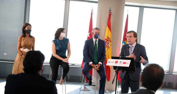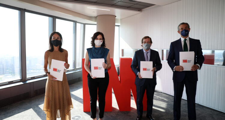 El alcalde de Madrid, José Luis Martínez-Almeida, ha suscrito con la presidenta de la Comunidad de Madrid, Isabel Díaz Ayuso; la presidenta de ADIF, Isabel Pardo de Vera; y el presidente de Distrito Castellana Norte (DCN), Álvaro Aresti, el convenio marco que regula la coordinación y la ejecución de las principales infraestructuras y actuaciones de Madrid Nuevo Norte. Durante la firma han estado presentes la vicealcaldesa de Madrid, Begoña Villacís, y los delegados de Desarrollo Urbano, Mariano Fuentes; Obras y Equipamientos, Paloma García Romero, y Medio Ambiente y Movilidad, Borja Carabante.