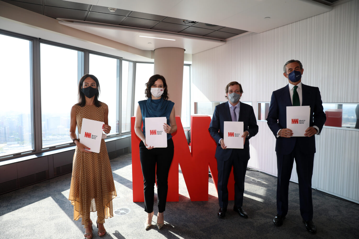 El alcalde de Madrid, José Luis Martínez-Almeida, ha suscrito con la presidenta de la Comunidad de Madrid, Isabel Díaz Ayuso; la presidenta de ADIF, Isabel Pardo de Vera; y el presidente de Distrito Castellana Norte (DCN), Álvaro Aresti, el convenio marco que regula la coordinación y la ejecución de las principales infraestructuras y actuaciones de Madrid Nuevo Norte. Durante la firma han estado presentes la vicealcaldesa de Madrid, Begoña Villacís, y los delegados de Desarrollo Urbano, Mariano Fuentes; Obras y Equipamientos, Paloma García Romero, y Medio Ambiente y Movilidad, Borja Carabante.