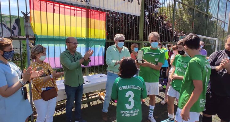 La Junta Municipal del Distrito de Salamanca ha organizado este fin de semana, en la Instalación Deportiva Básica Breogán, el primer torneo amistoso de fútbol 7 con el objetivo de ‘Meter un gol a la intolerancia’. En él han participado cuatro equipos mixtos del distrito: Club Recreativo Guindalera, que ha sido el ganador; Club Deportivo Breogán, Escuela Deportiva Manila Estrellas y Club Deportivo Unión El Parque.