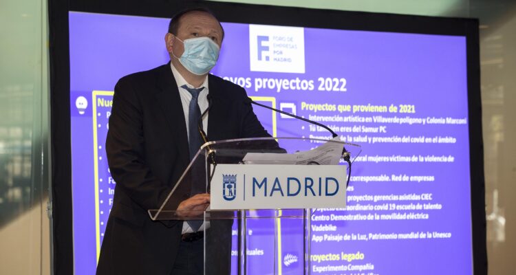 El delegado de Economía, Innovación y Emprendimiento ha explicado los nuevos proyectos a desarrollar durante el año 2022, entre los que “por primera vez, se incorporan tres proyectos que se desarrollarán en los distritos, por lo que ampliamos el ámbito de actuación del foro”. Así, los proyectos aprobados son: promoción de Zona Cero Emisiones; un Centro de Innovación y Transformación Digital de los Servicios; la difusión del proyecto Bosque Metropolitano; la ventanilla virtual para la atención a la empresa extranjera; el fomento de la movilidad ciclista; la inserción laboral para la autonomía residencial; el fomento de la movilidad sostenible y la energía renovable; la prevención del suicidio en adolescentes; el prototipo Leer Madrid; las Olimpiadas Escolares; Artrics Villa de Vallecas; la educación para la salud en entornos virtuales; Madrid Urban Sports 2022 y Patrimonio del Recuerdo.