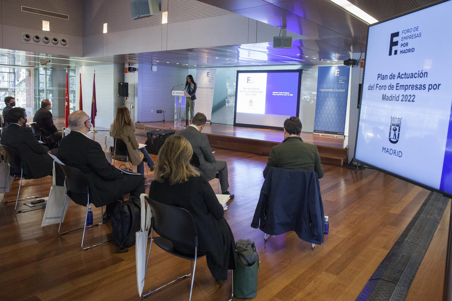 La vicealcaldesa de Madrid, Begoña Villacís, acompañada por el delegado de Economía, Innovación y Empleo, Miguel Ángel Redondo, ha participado este viernes en la reunión anual del Foro de Empresas por Madrid, plataforma de colaboración público-privada entre el Ayuntamiento y el sector empresarial más comprometido con la ciudad, en la que ha sido aprobado el Plan de Actuación 2022 presupuestado con 2,8 millones de euros.