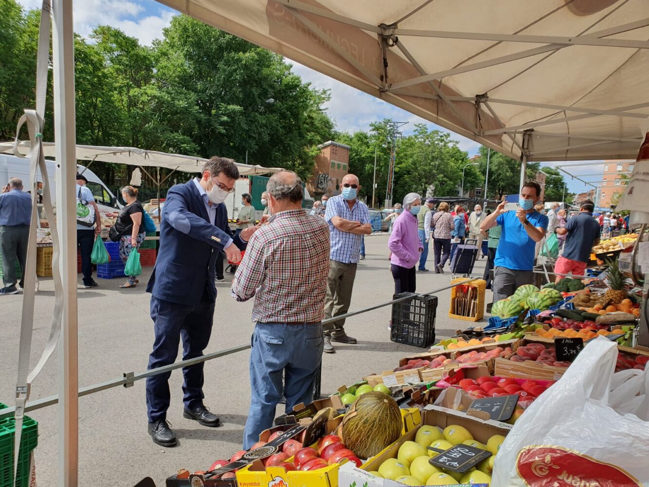 El concejal del distrito, Álvaro González, ha visitado el recinto para conocer de primera mano la aplicación de las medidas de seguridad e higiene, así como la organización de la actividad con objeto de que todo funcione conforme a las normas establecidas para este tipo de comercio.