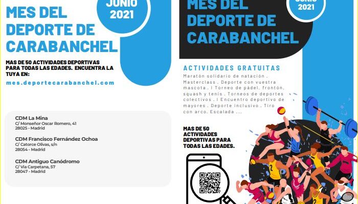 Entre otras pruebas, habrá un maratón solidario de natación, torneos de pádel, frontón, tenis y diversos deportes en grupo, encuentro deportivo de mayores, deporte inclusivo, pruebas de tiro con arco e iniciación a la escalada. La información completa puede encontrarse en el enlace https://mes.deportecarabanchel.com.