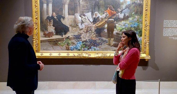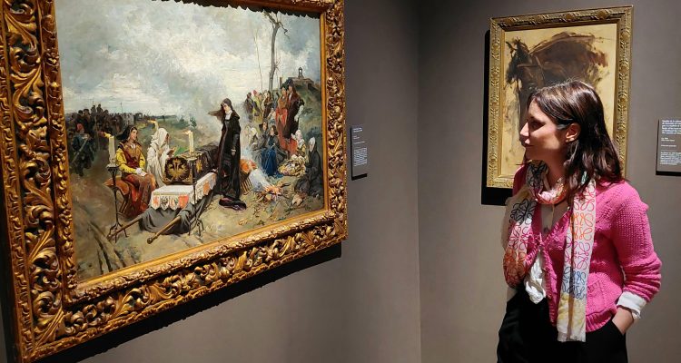 Francisco Pradilla fue uno de los grandes pintores españoles de la segunda mitad del siglo XIX y las primeras décadas del XX, cuya obra alcanzó gran fama y éxito tanto dentro como fuera de España. La exposición que se abre al público hoy, comisariada por Soledad Cánovas del Castillo, y Sonia Pradilla, bisnieta del artista, reúne 75 piezas entre oleos, dibujos, acuarelas, bocetos, cartas y fotografías, que adentran al espectador en el universo del pintor. La variedad de géneros representados –además de pintura de historia, hay paisajes, retratos, escenas de la mitología y escenas poéticas, intimistas y costumbristas– demuestra que Pradilla no solo supo crear el arquetipo histórico-legendario, sino que también fue un pintor muy completo y polifacético, lo que aporta variedad e interés especial a esta muestra homenaje.
