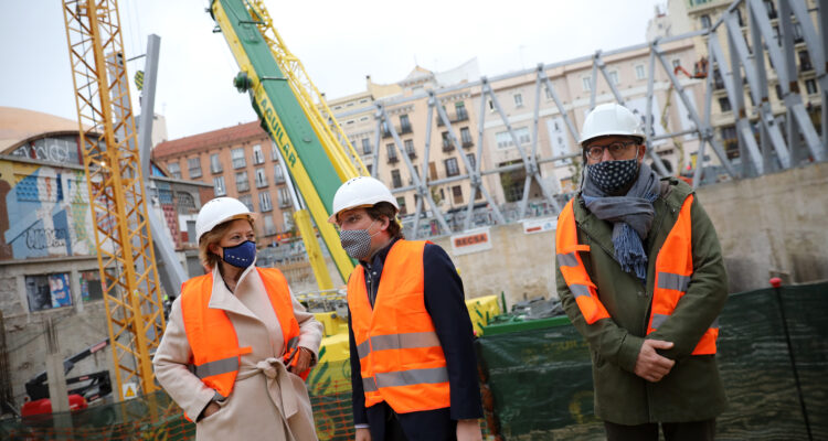 El alcalde de Madrid, José Luis Martínez-Almeida, acompañado de la delegada de Obras y Equipamientos, Paloma García Romero, y del concejal de Centro, José Fernández, ha visitado esta mañana las obras de construcción del nuevo Centro Deportivo Municipal La Cebada que se está levantando en la plaza del mismo nombre. Las nuevas instalaciones, estarán listas en otoño del próximo año y cuentan con una inversión de 12,4 millones de euros.