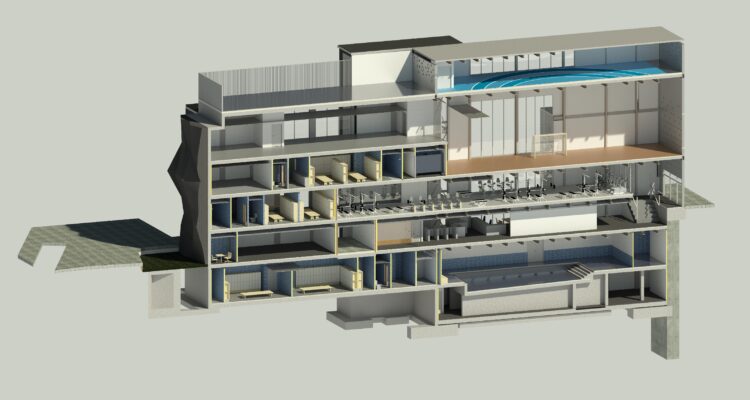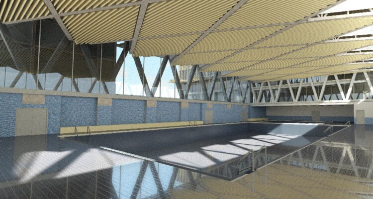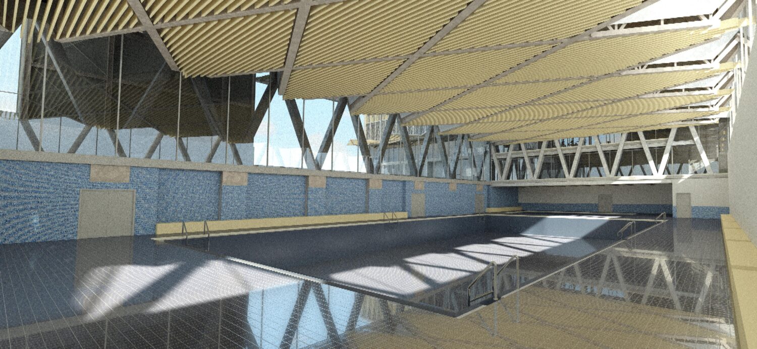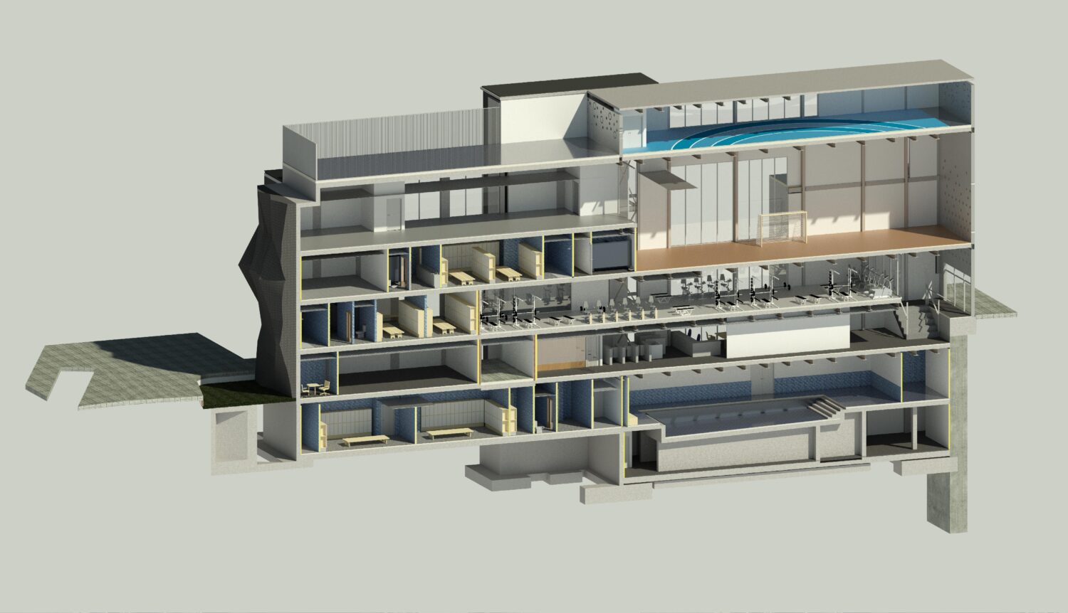 El centro deportivo tendrá una superficie útil total de 6.355 m2 repartidos en siete plantas, dos de ellas bajo rasante. Contará con dos piscinas cubiertas, una principal, de 418 m2 y otra de iniciación de 78 m2, que estarán situadas en un amplio espacio de 962 m2 en la planta -1. Otro de los puntos fuertes del centro será la pista polideportiva de 962 m2 enclavada en la segunda planta. El edificio tendrá también 352 m2 destinados a gimnasio, que estará repartido entre las plantas primera y tercera. Además, el nuevo centro deportivo dispondrá de un gran espacio al aire libre de 915 m2 ubicado en la terraza.