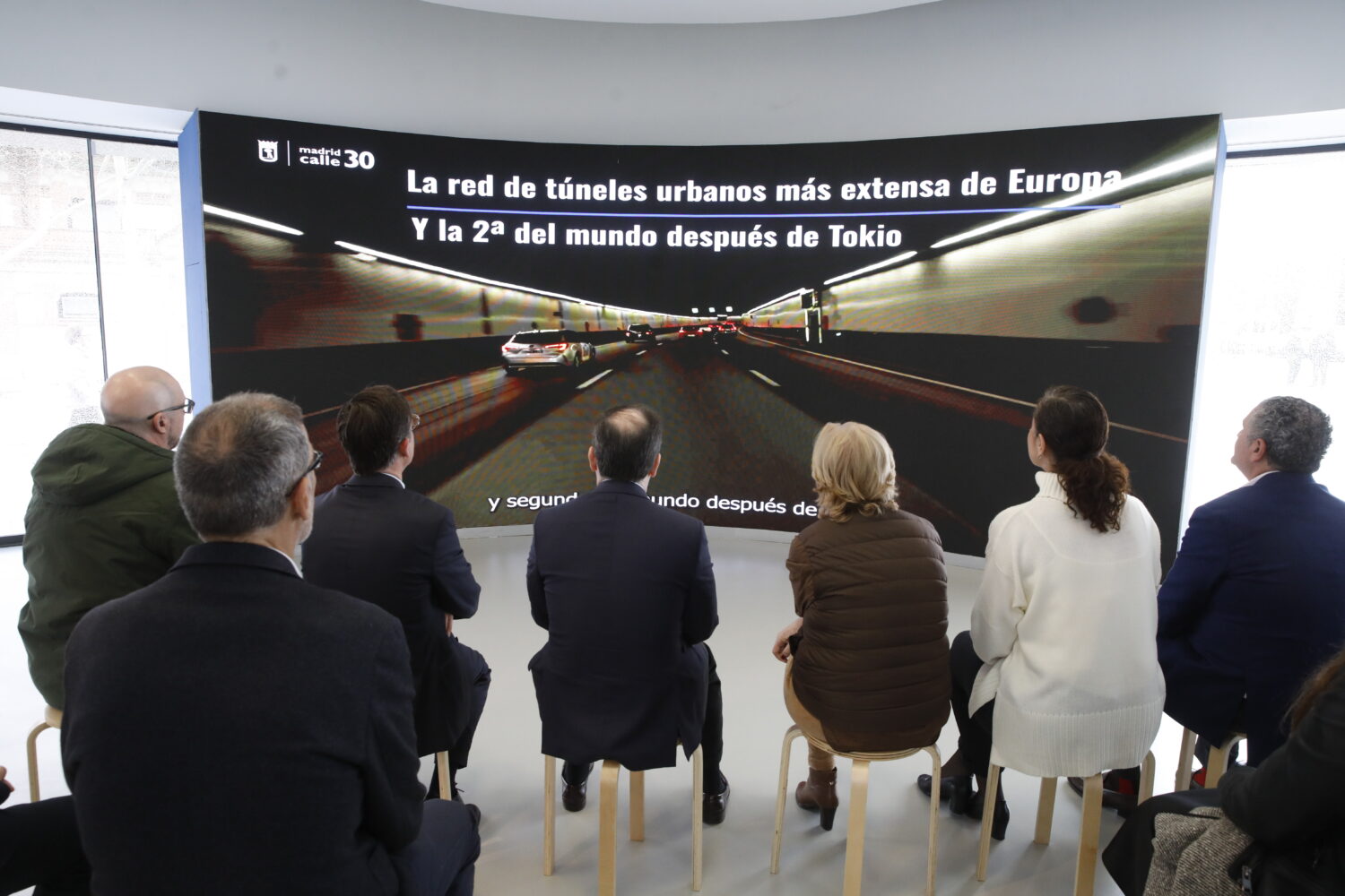 El espacio cuenta con una línea del tiempo que muestra los principales hitos que han marcado la historia de la M-30, desde la inauguración de los primeros tramos en 1974, hasta los tres grandes proyectos del actual mandato: Parque Ventas y los soterramientos del tramo final del paseo de la Castellana y de la A-5.