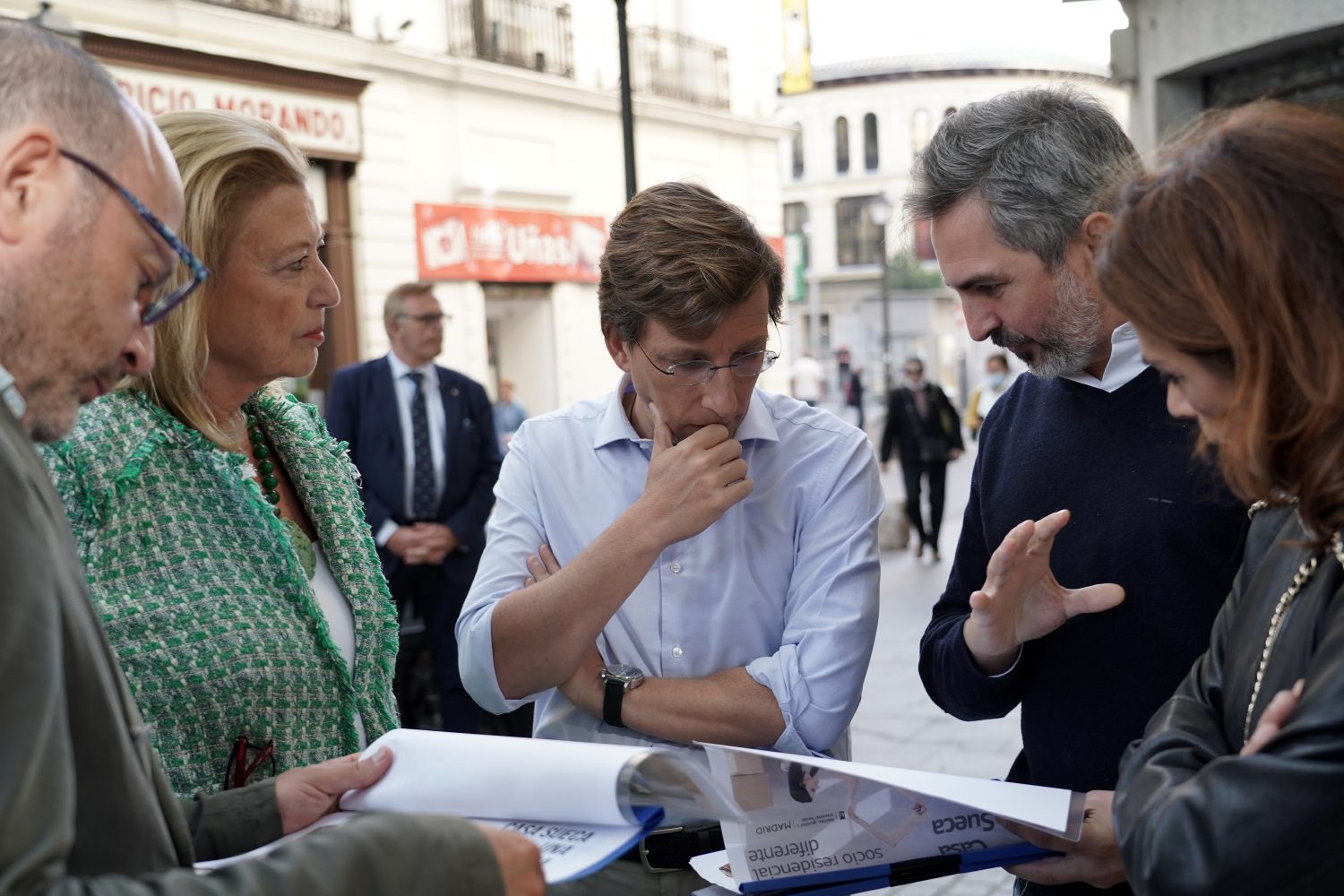 El alcalde de Madrid, José Luis Martínez-Almeida, acompañado de los delegados de Obras y Equipamientos, Paloma García Romero, y de Familias, Igualdad y Bienestar Social, Pepe Aniorte, y del concejal de Centro, José Fernández, ha visitado esta mañana el palacio de la Duquesa de Sueca, donde ha explicado que el Área de Obras está ya redactando el proyecto para los futuros usos de este inmueble.