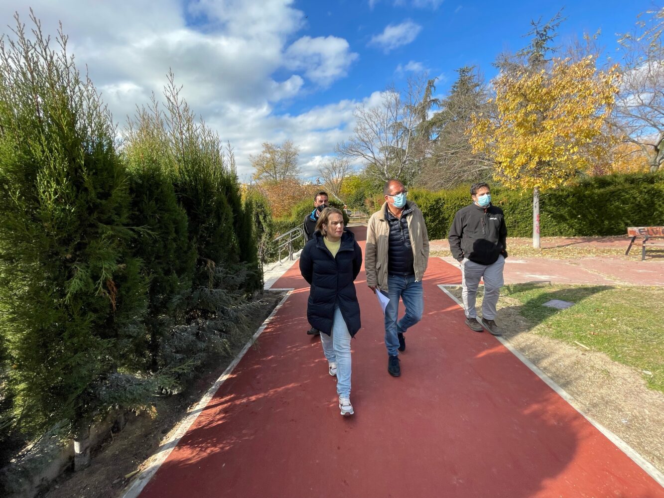 La concejala del distrito de Moncloa-Aravaca, Loreto Sordo, ha comprobado hoy el avance de las obras que, desde el pasado verano, se están llevando a cabo en uno de los parques más significativos del distrito, el de La Bombilla.
