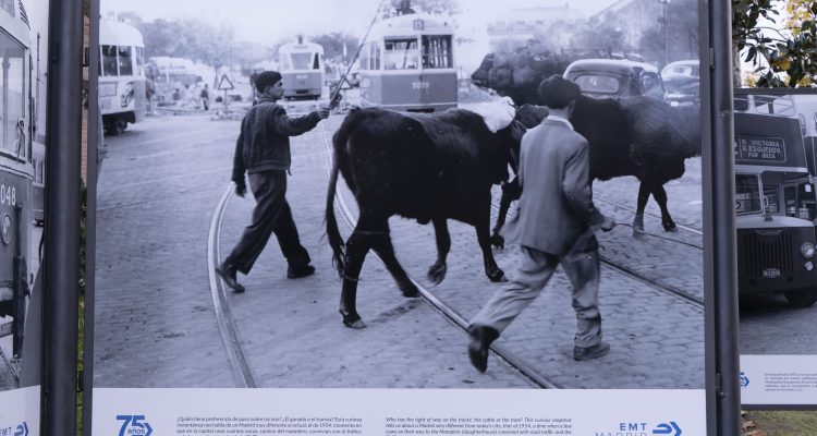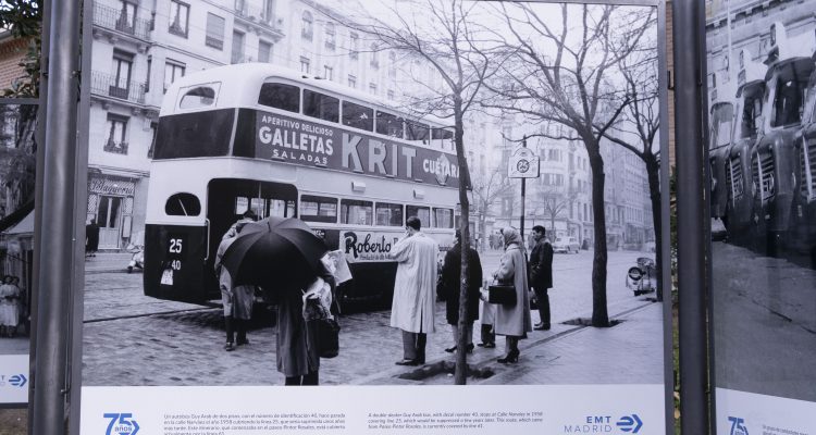 Los autobuses municipales de Madrid quedan retratados en esta exposición en el contexto de la ciudad y la vida cotidiana de los ciudadanos desde el año 1947. Por ejemplo, se exponen fotos de los icónicos autobuses de dos pisos Leyland Titan, los primeros ‘búhos’ en las marquesinas de Cibeles, los antiguos tranvías que circularon antaño por Madrid o los legendarios trolebuses retratados en medio del bullicio de la Puerta del Sol, entre otras.
