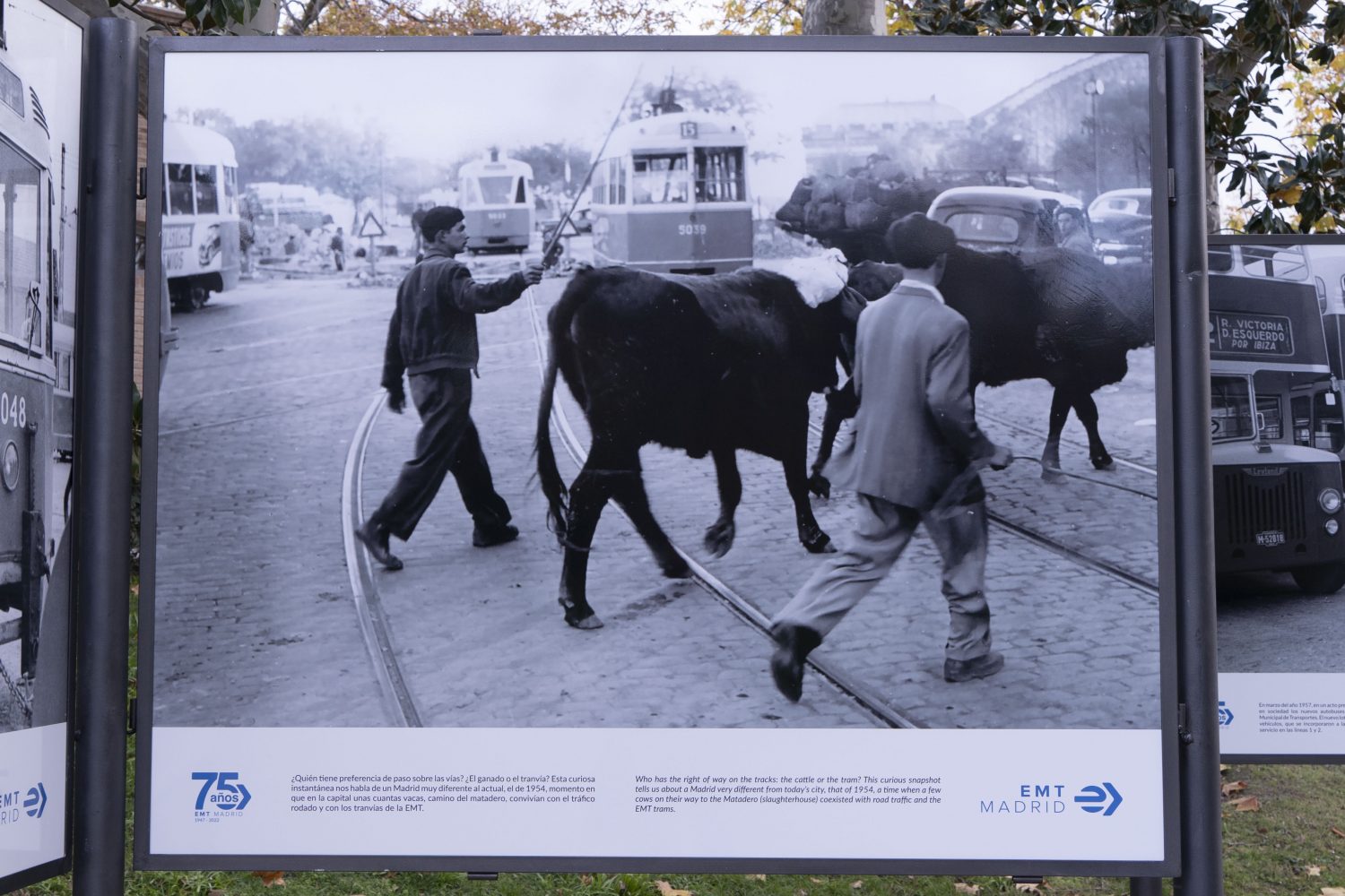 Esta retrospectiva del transporte madrileño, auspiciada por la EMT, se compone de un total de 25 imágenes especialmente seleccionadas por la celebración de la SEM 2023 a lo largo de un recorrido de 60 metros. Todas ellas, ya expuestas anteriormente en El Retiro con motivo de la celebración del 75º Aniversario de la empresa municipal en diciembre de 2022, están ubicadas en monolitos y son de gran formato.