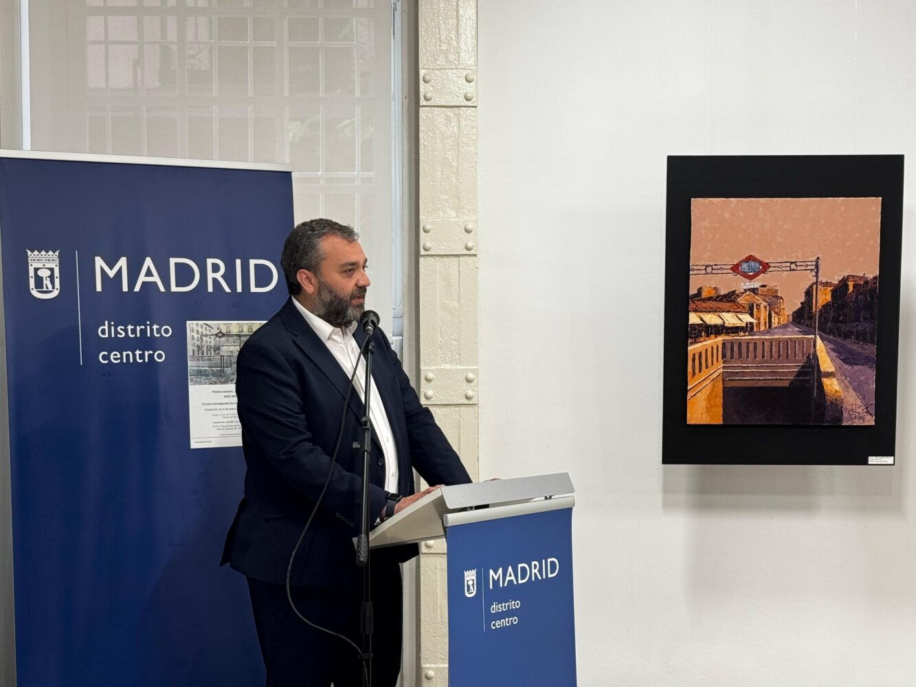 Hasta el próximo 2 de junio, calles, plazas, edificios y parques serán los protagonistas de la exposición de Raúl Ranera Próxima estación…#DistritoCentro, en el Centro Cultural Clara del Rey. El concejal del distrito, Carlos Segura, ha inaugurado hoy esta muestra, destacando “la realidad de unas obras que nos ofrecen un acercamiento a rincones que visitamos diariamente, pero a los que no prestamos atención”. Segura ha animado a la ciudadanía “a recorrer los seis barrios del distrito de una manera diferente, a través de la pintura, siendo el propio espectador el protagonista de los cuadros”.