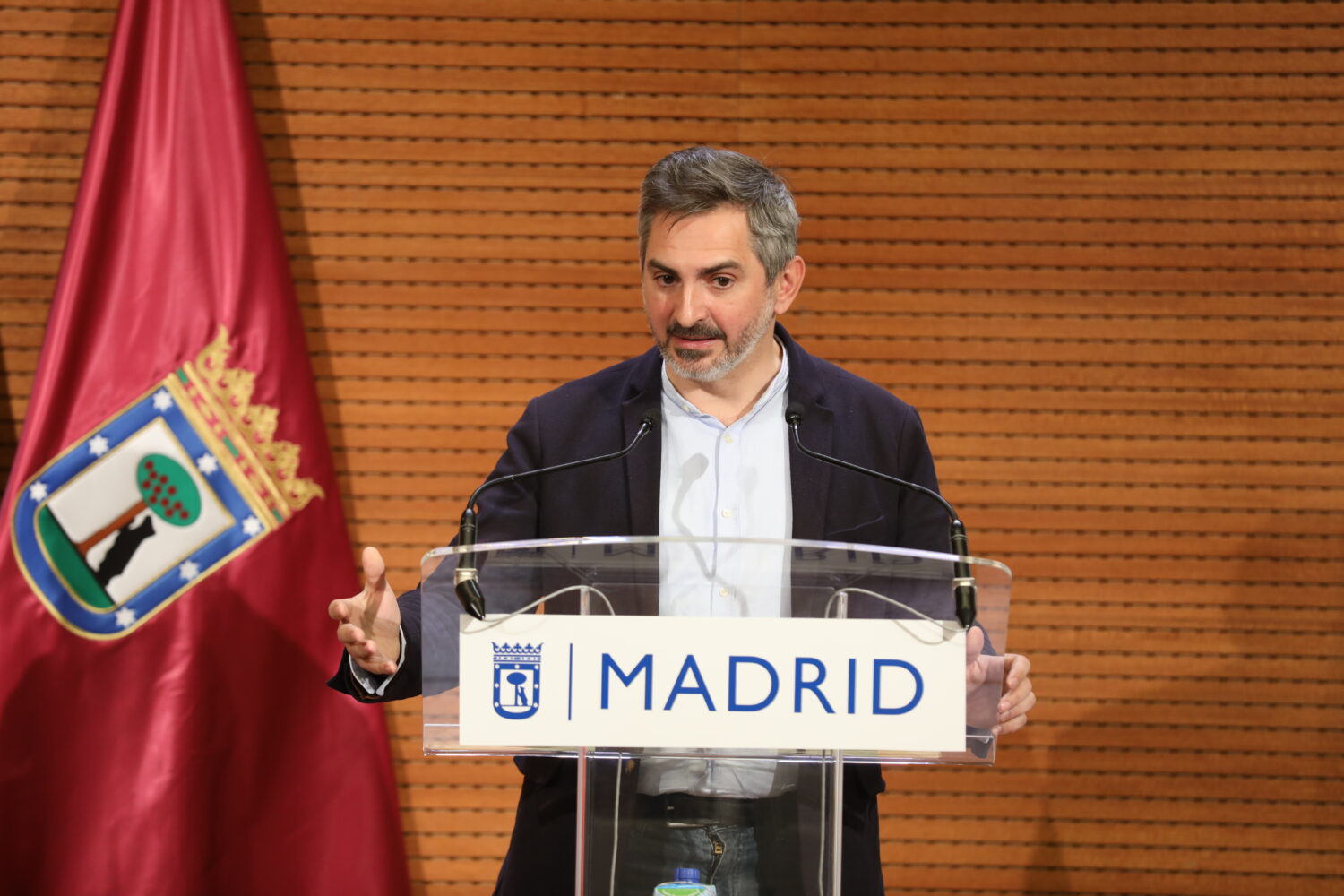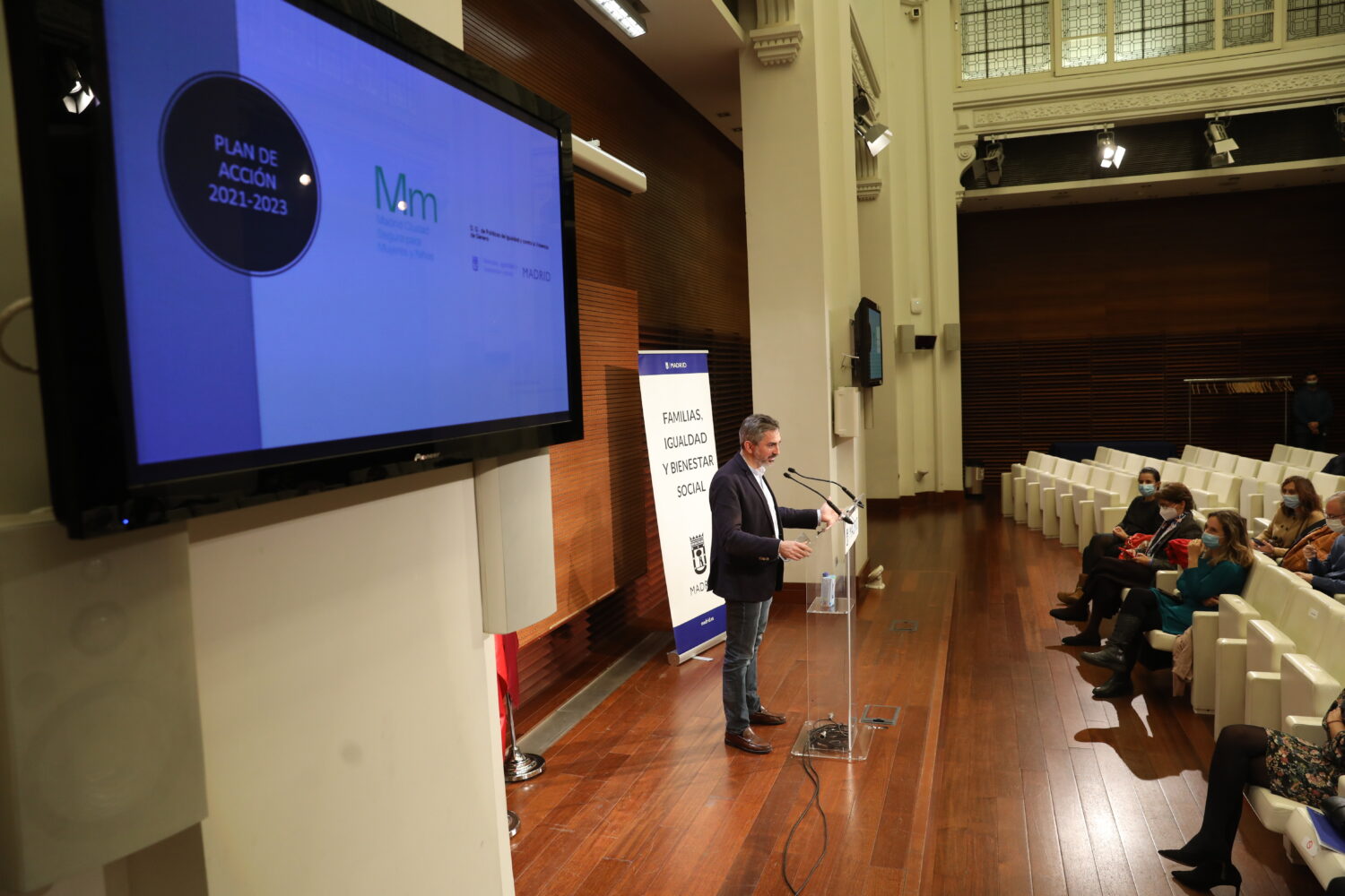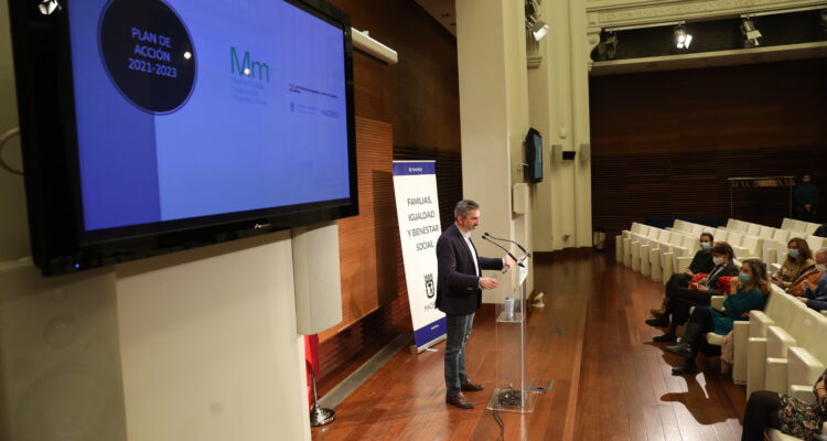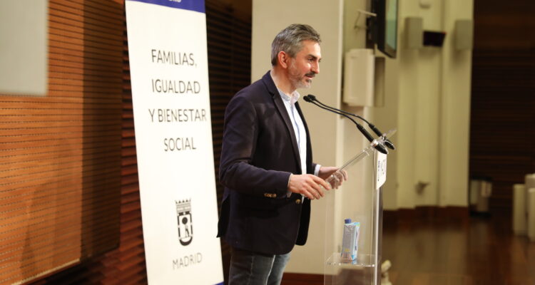 Pepe Aniorte, delegado del Área de Familias, Igualdad y Bienestar Social, en la clausura de la presentación del plan de acción ‘Madrid, Ciudad Segura para Mujeres y Niñas 2021-2023’