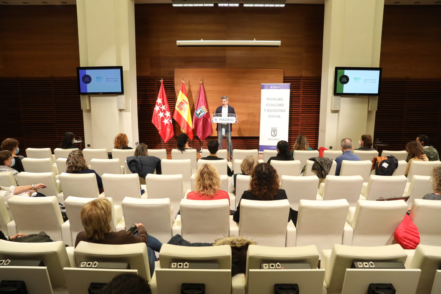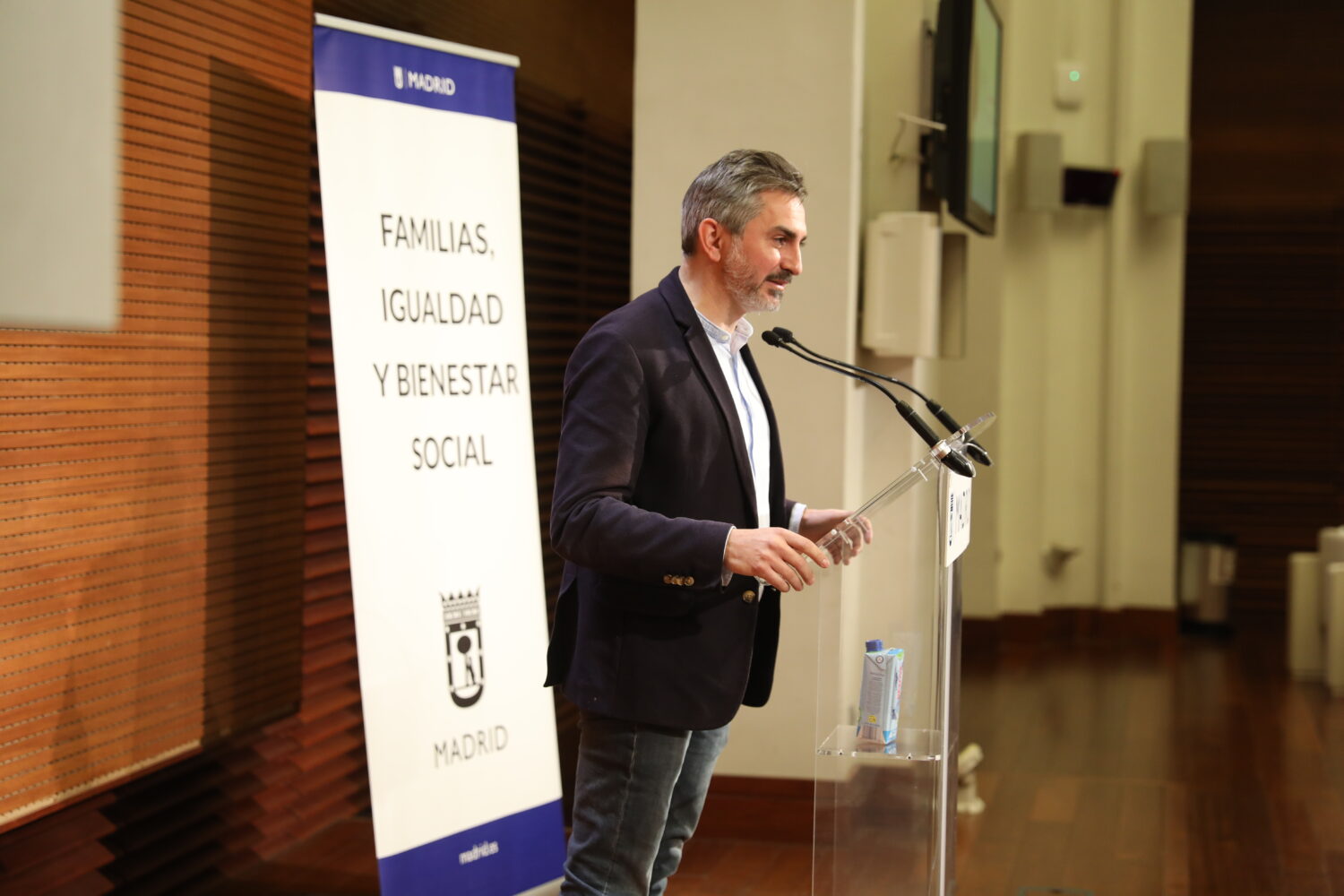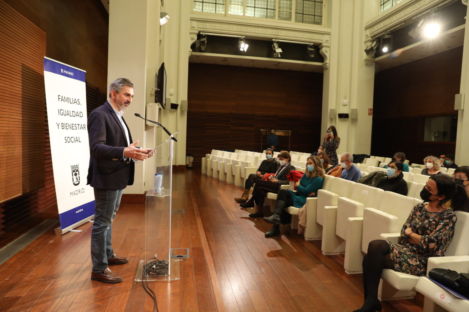 Pepe Aniorte, delegado del Área de Familias, Igualdad y Bienestar Social, en la clausura de la presentación del plan de acción ‘Madrid, Ciudad Segura para Mujeres y Niñas 2021-2023’