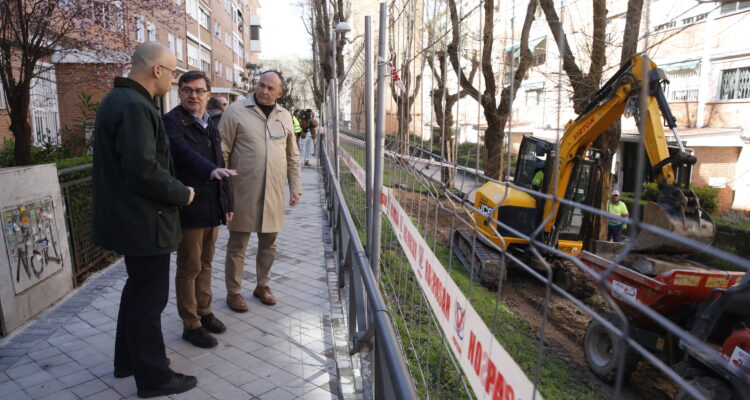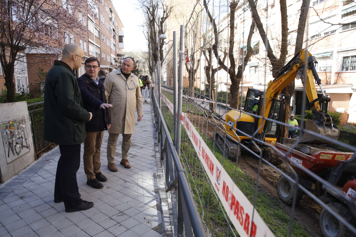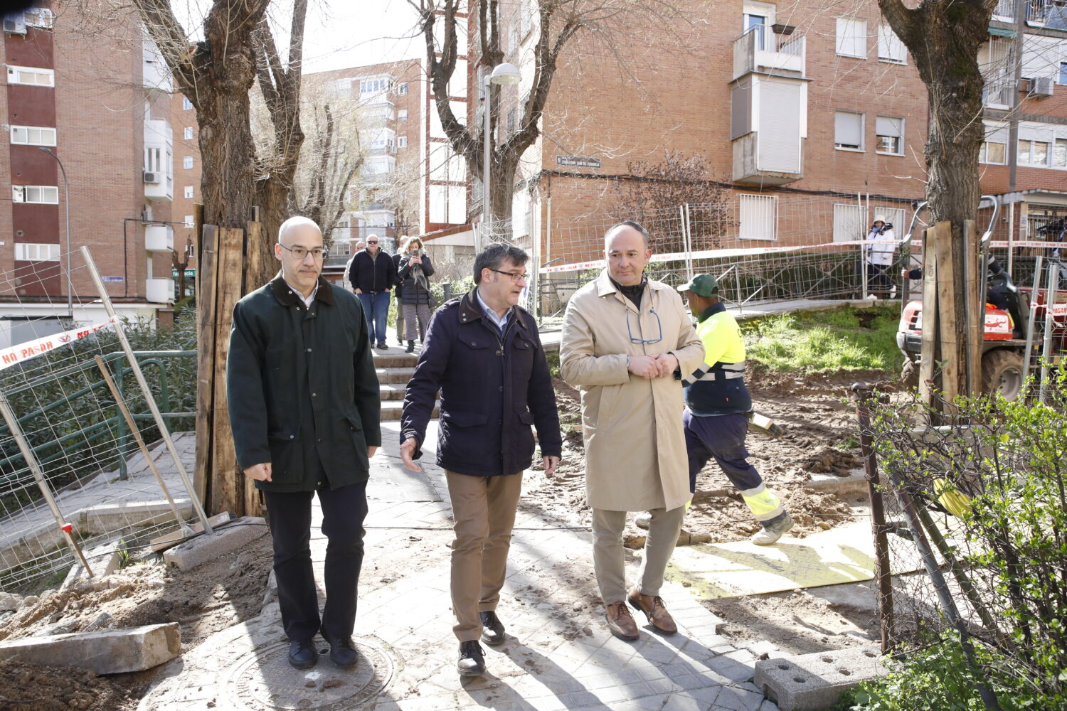 El delegado de Políticas de Vivienda y presidente de la Empresa Municipal de la Vivienda y Suelo (EMVS Madrid), Álvaro González, acompañado del concejal de Moratalaz, Nacho Pezuela, ha visitado las obras de regeneración urbana que el Plan Regenera Madrid está llevando a cabo en este distrito con una inversión que supera el millón de euros (1.103.222 euros).