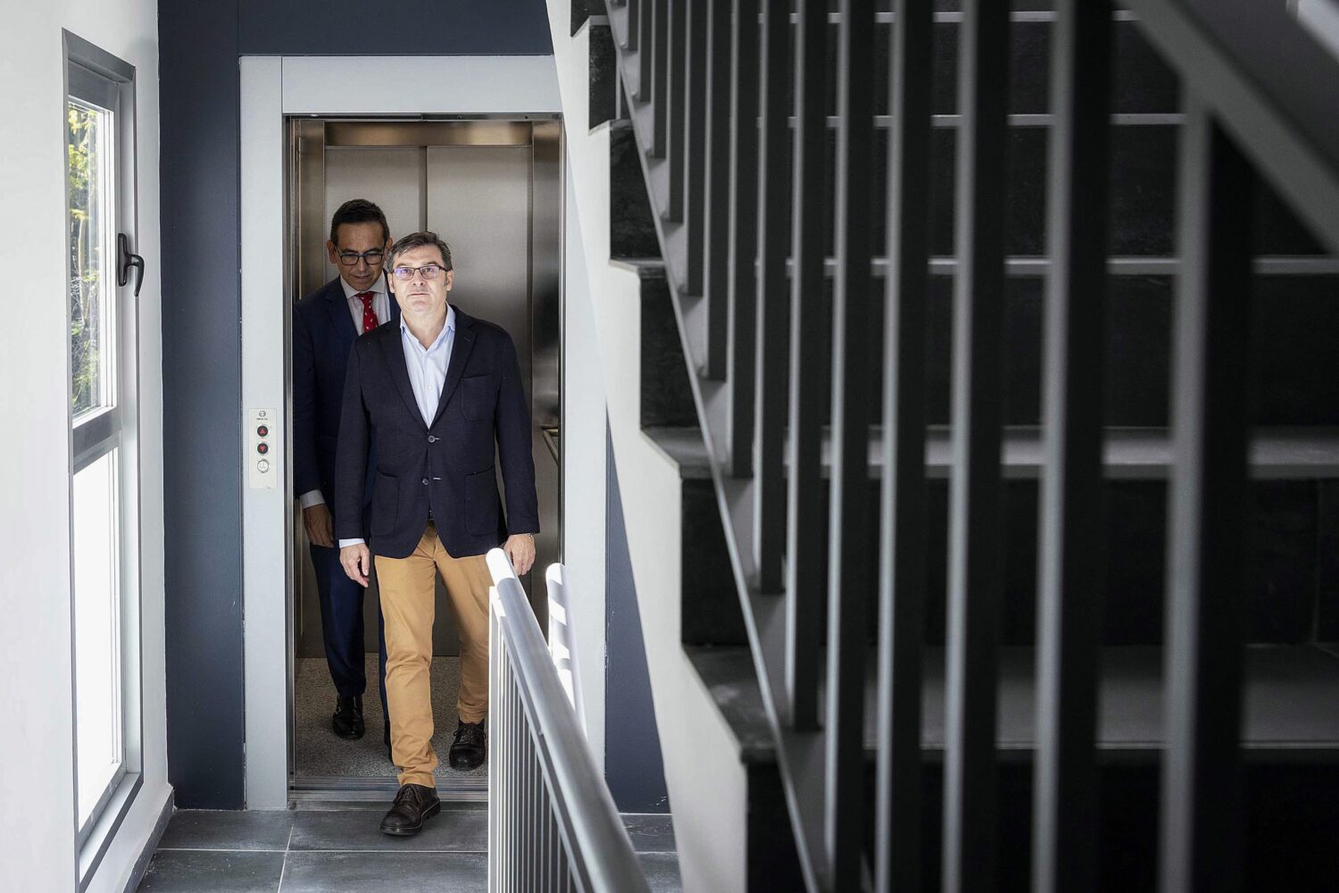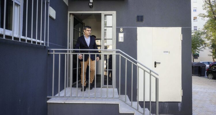 El delegado de Políticas de Vivienda y presidente de la Empresa Municipal de la Vivienda y Suelo (EMVS Madrid), Álvaro González, acompañado por el concejal de Villaverde, Orlando Chacón, ha visitado esta mañana un edificio del distrito, del año 1960, que consta de cinco alturas y ha mejorado su accesibilidad gracias al Plan Rehabilita del Ayuntamiento de Madrid por el que los vecinos han recibido una subvención de 190.000 euros.