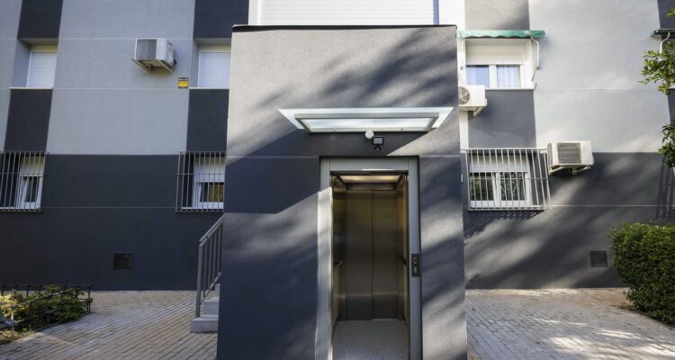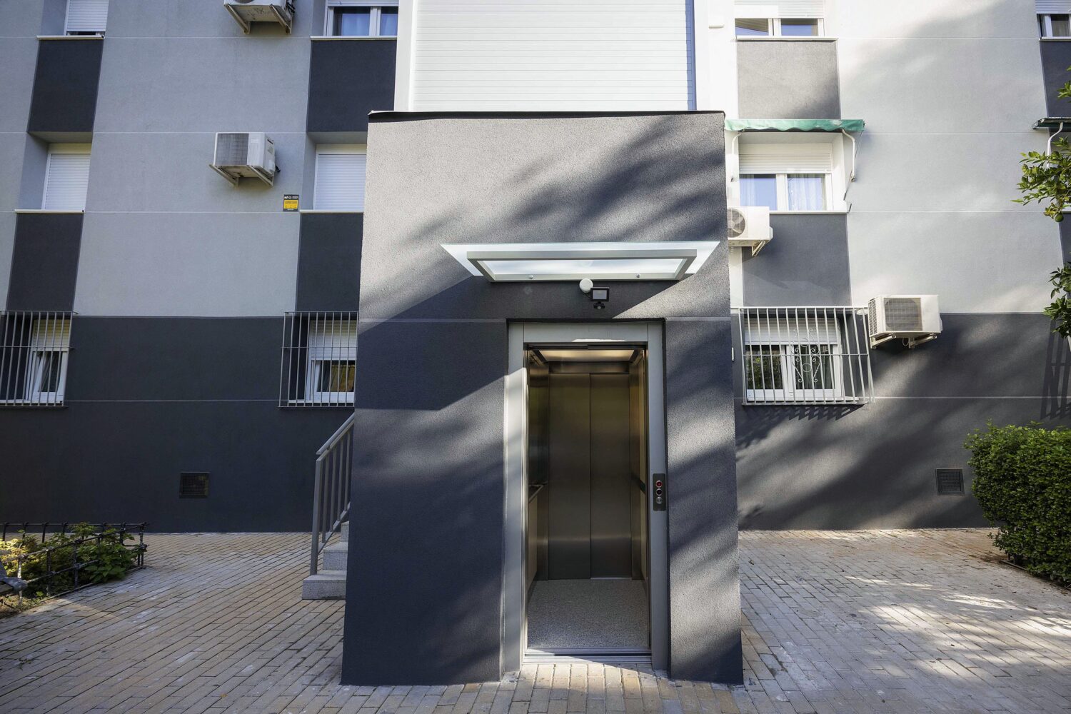 El edificio no contaba con ascensor, por lo que se ha instalado uno exterior con capacidad para seis personas y sin cuarto de máquinas. El acceso se realiza desde los rellanos de las viviendas, con un ancho mínimo de 1,20 metros, para lo que se ha demolido la escalera y se ha ejecutado una nueva de un solo tramo de escalones.