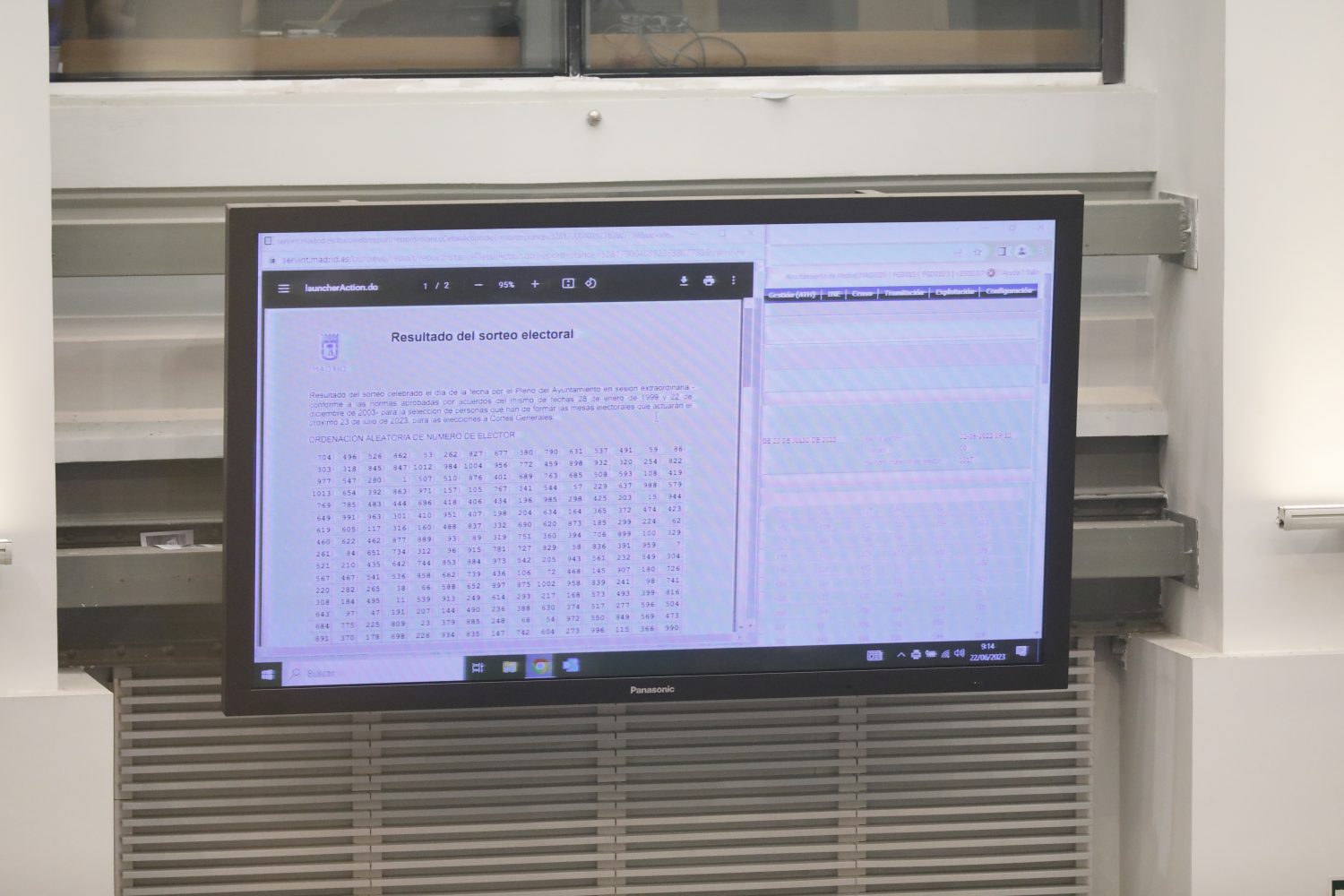 Fruto de dicho sorteo, se ha elaborado una tabla que establece el orden de selección de los electores que en cada mesa electoral deben ocupar los cargos de presidente y vocales, así como los que han de actuar como suplentes. En total, se va a notificar el nombramiento a 31.302 personas elegidas por sorteo entre los electores de cada mesa, que son las requeridas para cubrir las 3.478 mesas electorales que se constituyen en los 416 colegios electorales del municipio de Madrid (quince menos que en las anteriores elecciones de mayo, a causa de ajustes que han debido hacerse por obras en algunos de ellos y por sustitución de locales no climatizados por otros que sí disponen de climatización).