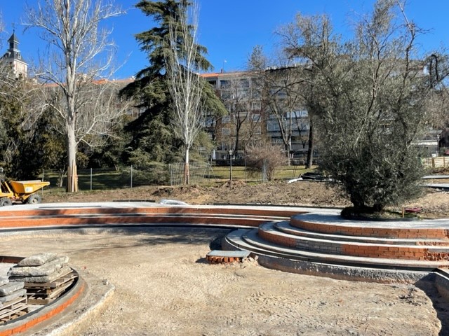 Con una inversión de 423.000 euros, la primera fase del proyecto, que concluirá el próximo mes de marzo, consiste en la adecuación del terreno, preparación de las instalaciones y construcción de un pequeño auditorio en grada integrado en el entorno del parque, del que se ha respetado el arbolado existente, dándole un nuevo protagonismo al olivo que ocupara ahora un espacio central. Asimismo, se han creado dos caminos: uno de ellos conecta con la calle Profesor Martín Almagro Basch y el paseo del Pintor Rosales y el otro vincula el espacio de lectura al templete de música situado en las proximidades. También se ha adecuado el entorno con la plantación de 20 nuevos árboles, pradera de césped natural y la instalación de diez nuevas farolas.