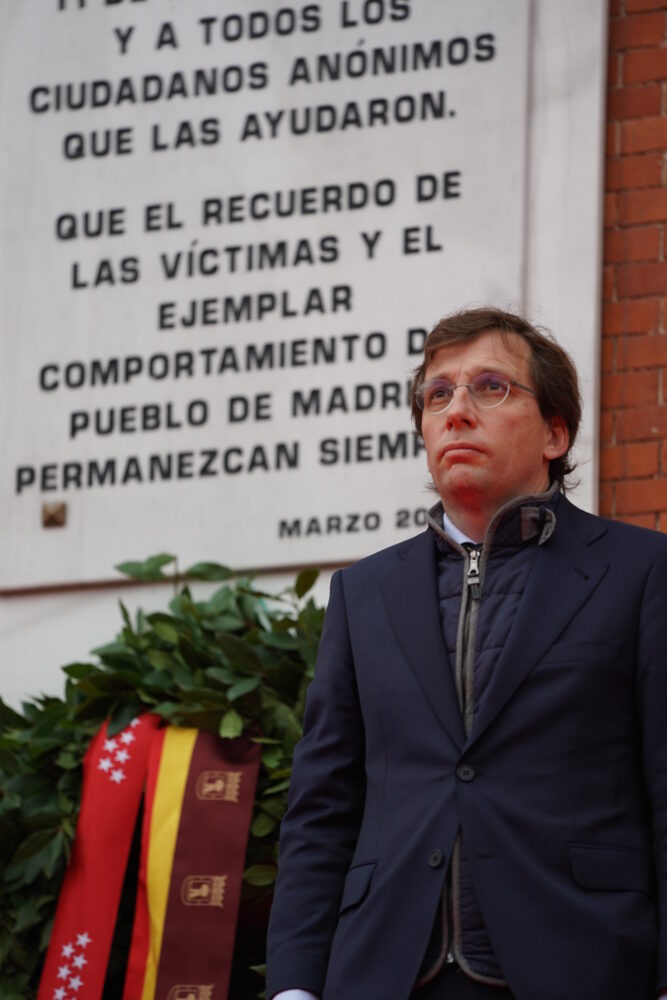 El alcalde de Madrid, José Luis Martínez-Almeida, junto a la presidenta regional, Isabel Díaz Ayuso, ha participado hoy en el acto de homenaje organizado por la Comunidad de Madrid para recordar a las 193 víctimas de los atentados terroristas que tuvieron lugar en Madrid el 11 de marzo de 2004. Mientras doblaban las campanas del Reloj de la Real Casa de Correos y las de iglesias cercanas a la Puerta del Sol, Almeida y Ayuso han depositado una corona de laurel junto a la placa que recuerda a los fallecidos. A continuación, la Orquesta y Coro de la Comunidad de Madrid, bajo la dirección de Krastin Nastev, ha interpretado las piezas Lacrimosa, del Réquiem de Mozart, y El cant dels ocells, de Pau Casals.