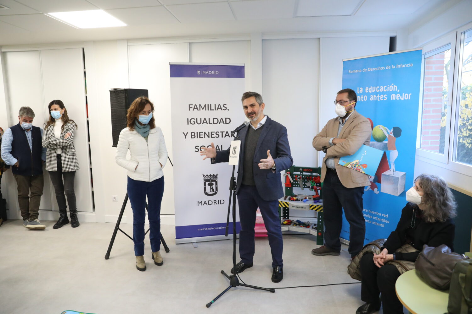 El delegado de Familias, Igualdad y Bienestar Social, Pepe Aniorte, acompañado del concejal del distrito de Hortaleza, Alberto Serrano, ha inaugurado las nuevas instalaciones del Centro de Atención a la Infancia 2 (CAI 2) que servirán, según ha explicado, para impulsar la calidad de la red de centros municipales que son “un referente de la ciudad y de toda España”. El delegado ha recordado, además, la calidad de los servicios que presta el Ayuntamiento de Madrid: “Se dispensa una atención extraordinaria a niños y familias que están viviendo situaciones muy difíciles, en unas instalaciones que acompañan ese gran trabajo” realizado por los profesionales de estos centros.