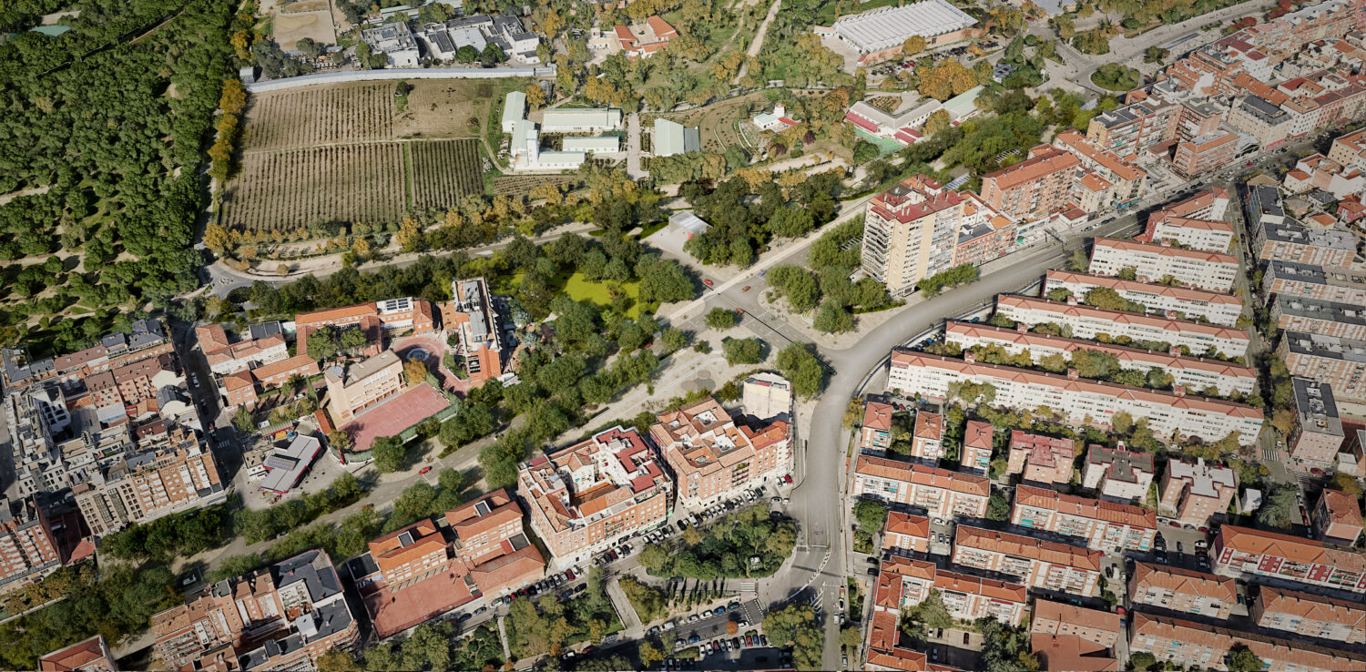 Teniendo en cuenta el entorno urbano en el que se ubica el proyecto y otros condicionantes, la solución más factible pasa por ejecutar las instalaciones fotovoltaicas sobre pérgolas. Este tipo de estructuras suelen emplearse, precisamente, para este objetivo en entornos urbanos, donde la disponibilidad de espacio es limitada.