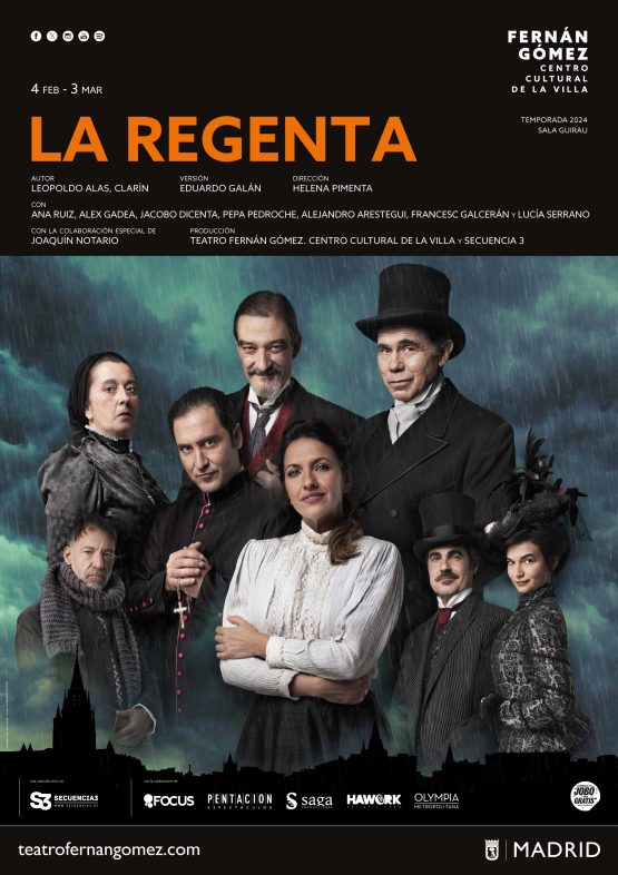 Tras el éxito obtenido con Los Pazos de Ulloa, el equipo formado por Helena Pimenta, en la dirección, y Eduardo Galán, en la versión, se vuelven a unir al teatro Fernán Gómez. Centro Cultural de la Villa para la producción y el estreno de La Regenta, que se podrá ver en la Sala Guirau del teatro del 4 de febrero al 3 de marzo. La producción cuenta con la colaboración de Serveis de l’Espectacle Focus, Pentación, Saga Producciones, Hawork Studios y Olympia Metropolitana.