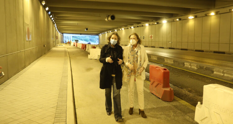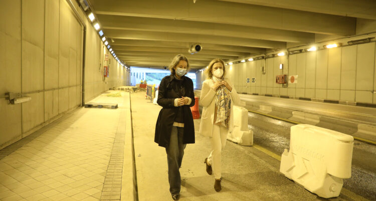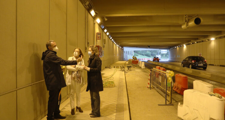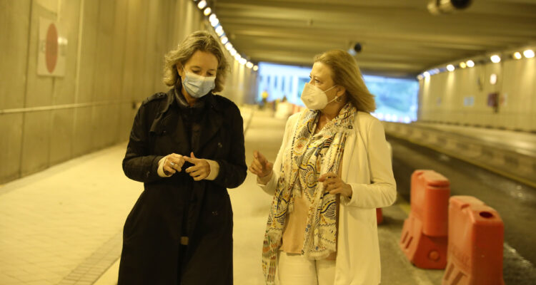 La delegada de Obras y Equipamientos, Paloma García Romero, acompañada de la concejala de Arganzuela, Cayetana Hernández de la Riva, ha visitado esta mañana los trabajos de mejora de la accesibilidad peatonal en el túnel de la avenida del Planetario que discurre por debajo del parque Enrique Tierno Galván. Estas actuaciones potenciarán la conexión entre la nueva zona residencial de Méndez Álvaro y las zonas residenciales del norte del barrio de Legazpi.