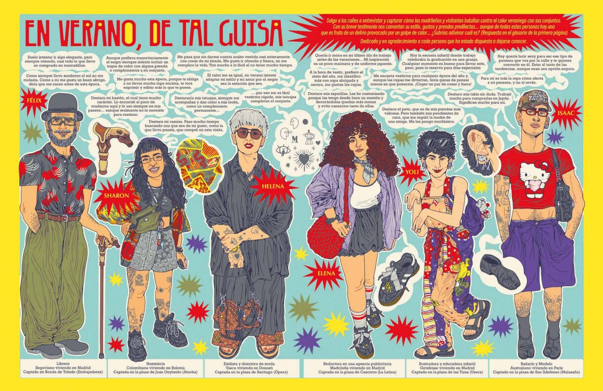 Por segundo año consecutivo, el Ayuntamiento de Madrid ha puesto en marcha la campaña ‘Refúgiate en la Cultura’ para animar a madrileños y visitantes a resguardarse del calor veraniego en espacios culturales de la ciudad. Las historietas que cuentan Cristina Llera y Van Saiyan invitan a acercarse a estos refugios para ver y escuchar flamenco en directo. Por su parte, Nacho Sevilla busca también refugio a los gorriones, el ave más urbana.