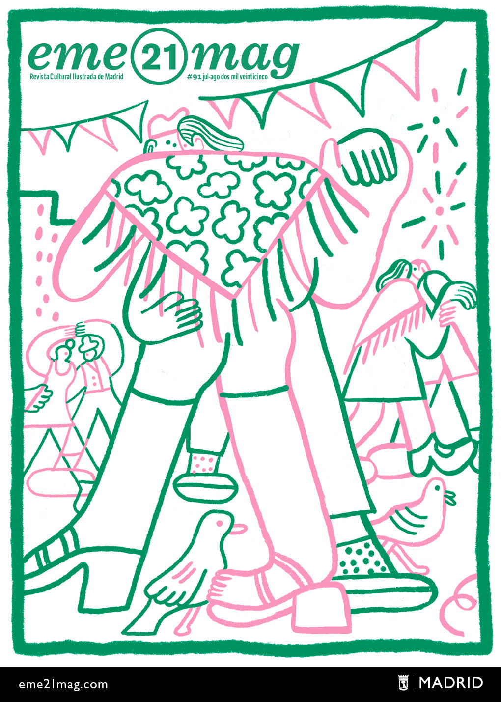 Madrid experimenta una rica vida cultural durante la temporada estival y eme21mag, la revista ilustrada del Área de Cultura, Turismo y Deporte, refresca las páginas de este número con las propuestas del festival Veranos de la Villa y la campaña ‘Refúgiate en la Cultura’. El verano ya está aquí y con él regresan las tradicionales verbenas populares de San Cayetano, San Lorenzo y La Paloma. La portada de este número de julio y agosto, obra de la ilustradora Cinta Arribas, recoge este ambiente tan veraniego y madrileño.