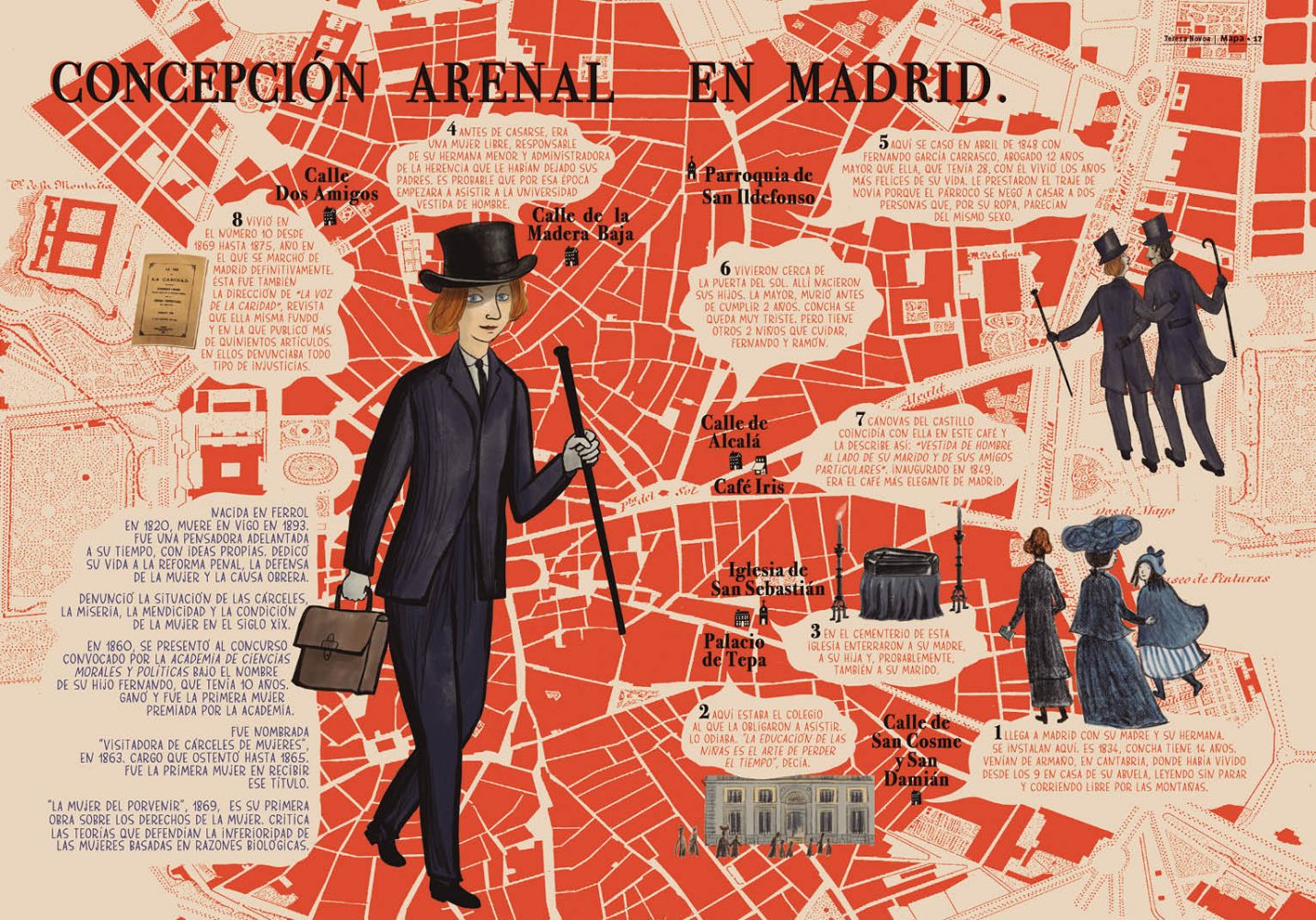 Eme21magazine incluye además el mapa ilustrado de Teresa Novoa que sigue los pasos de Concepción Arenal en Madrid, una gallega adelantada a su tiempo que dedicó su vida a la reforma penal, la defensa de la mujer y la causa obrera. También mira al pasado la ilustración de Fernando Vicente en Madrid Vintage con Los 13 que nunca fueron, una reflexión sobre el diseño desarrollado en Cataluña y en Madrid.