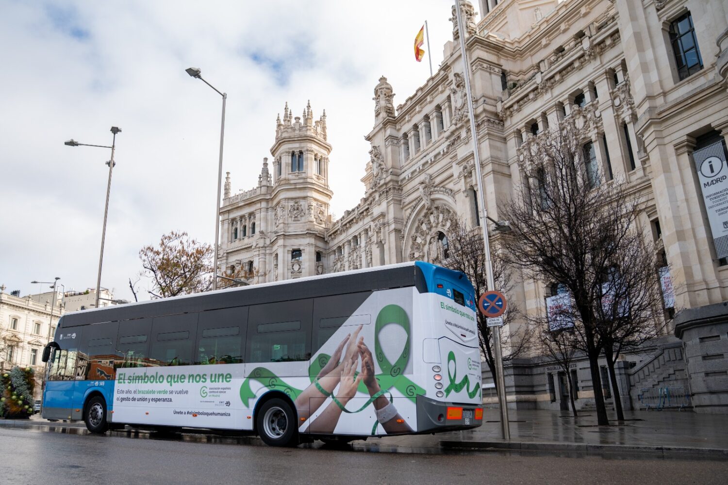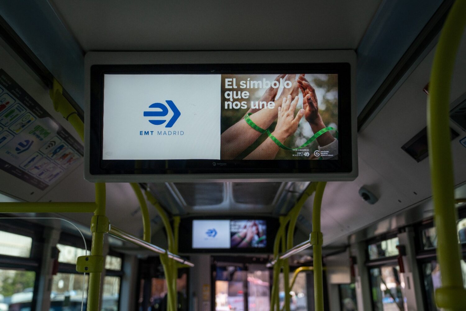 A lo largo de este mes, la presencia del autobús especialmente decorado en las calles de Madrid para visibilizar y respaldar esta causa se va a simultanear con otras acciones divulgativas contra el cáncer en las pantallas interiores de los autobuses madrileños. Además, el personal de conducción de la flota municipal porta hoy un brazalete verde como apoyo a la campaña de la AECC ‘Brazaletes de esperanza’, iniciativa que pretende hacerse eco entre empresas e instituciones como una muestra de solidaridad, bajo el lema ‘El símbolo que humaniza’. Esta acción, que se activa cada año por estas fechas con motivo de la celebración del Día Internacional contra el Cáncer, se traduce en un gesto de compromiso, de ayuda y de acompañamiento a las personas con cáncer y a los profesionales que les cuidan.
